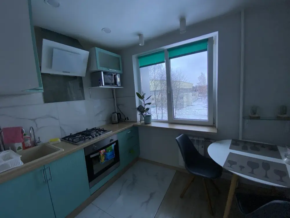 Внутри расположена яркая кухня с необходимой посудой и бытовой техникой для возможности приготовить еду самостоятельно.