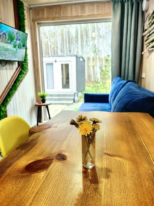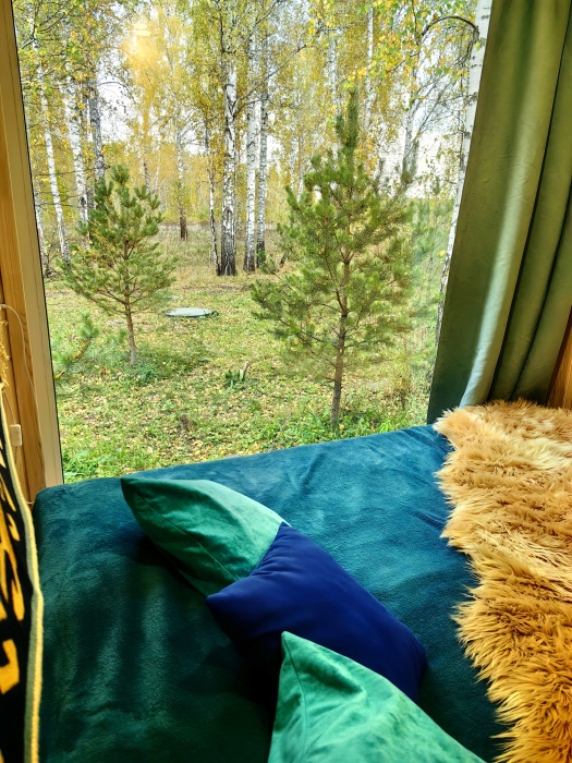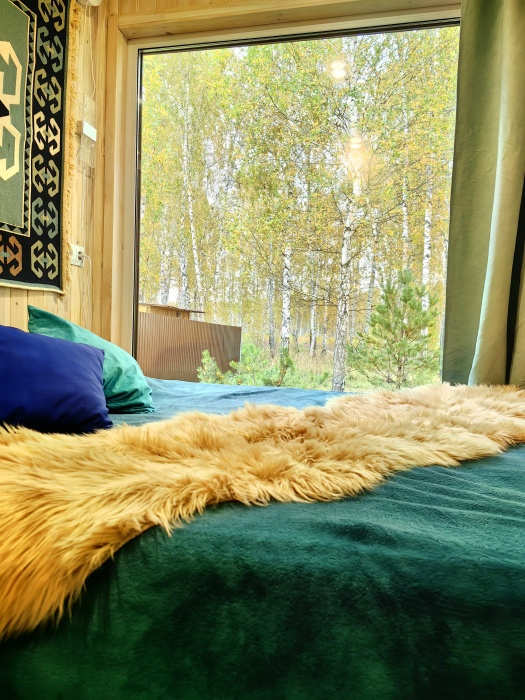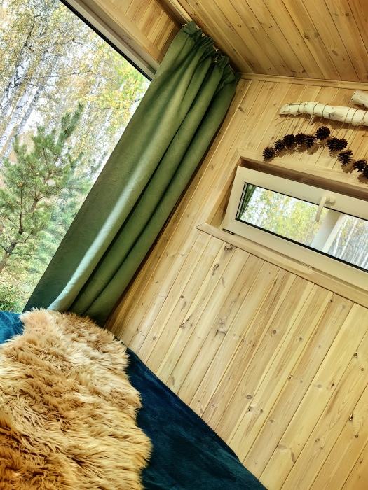 Баня с панорамным окном и теплая комната отдыха, где Вы можете попить чай.