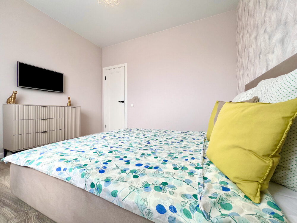Дорогие клиенты, доброго времени суток. Представляем Вашему вниманию абсолютно новую, видовую 1-комнатную квартиру (евродвушку) с отличным ремонтом, чистую и очень уютную, находится в центре ФМР (Фестивальный микро район) в жилом комплексе «Цветы». Парковка под шлагбаумом, где удобно и безопасно оставить машину. Если Вы путешествуете с детьми, то они смогут весело провести время на оборудованной детской площадке (площадка очень большая в закрытом дворе с прорезиненной поверхностью для минимизации травм, есть футбольное поле, теннисные столы, горки, песочницы, качели, тренажеры, турники). Во дворе жилого комплекса есть кофейни, аптеки, магазины, маркетплейсы, салоны красоты и многое другое. В шаговой доступности остановки общественного транспорта, продуктовые магазины, кафе, банки, «Табрис». До центральной улицы Красная - всего 2,9 км.