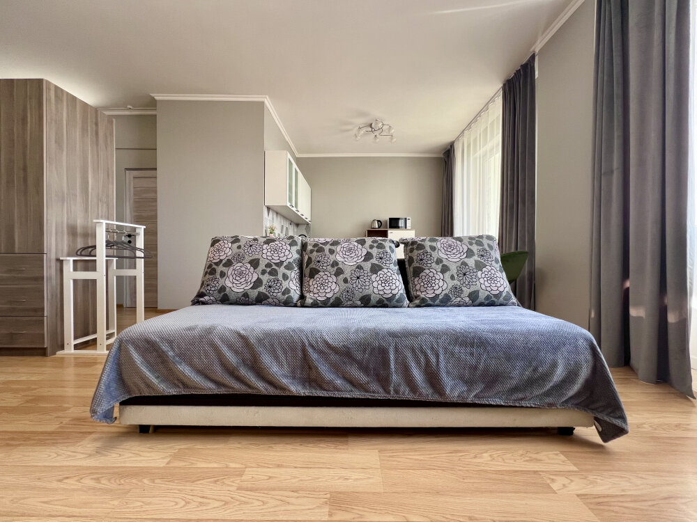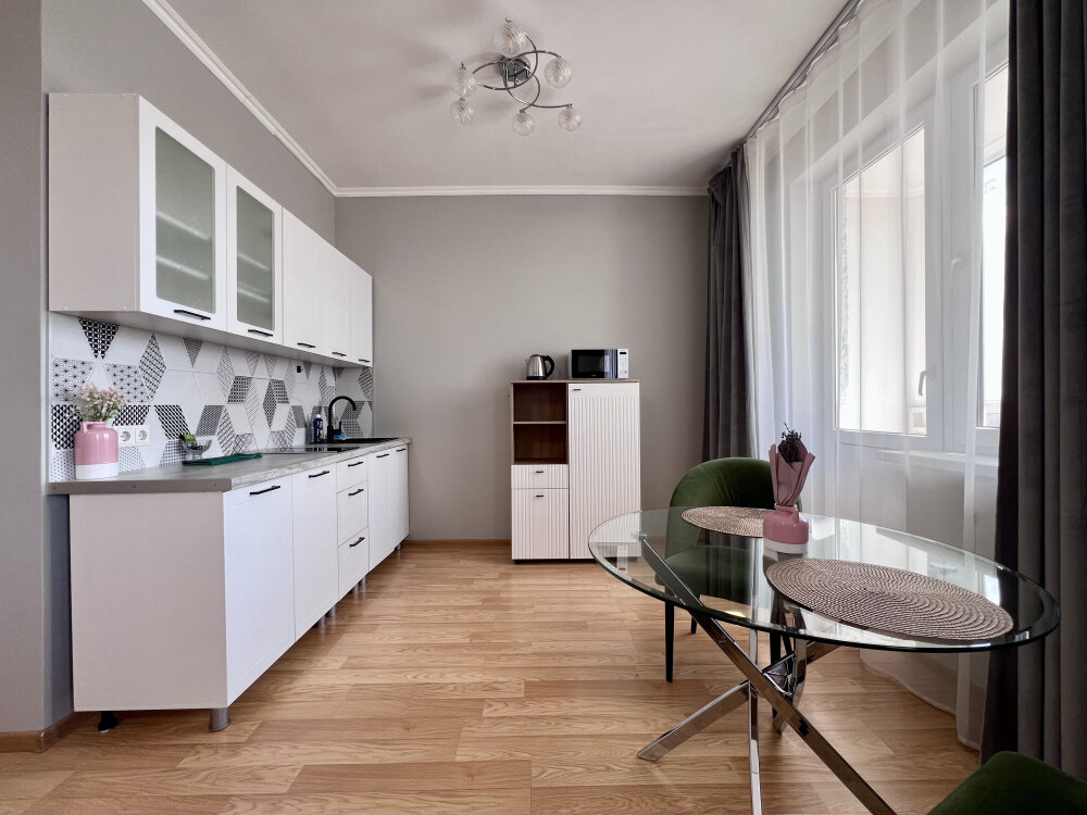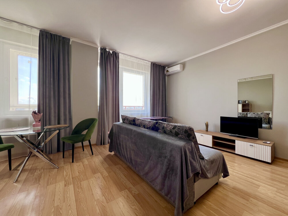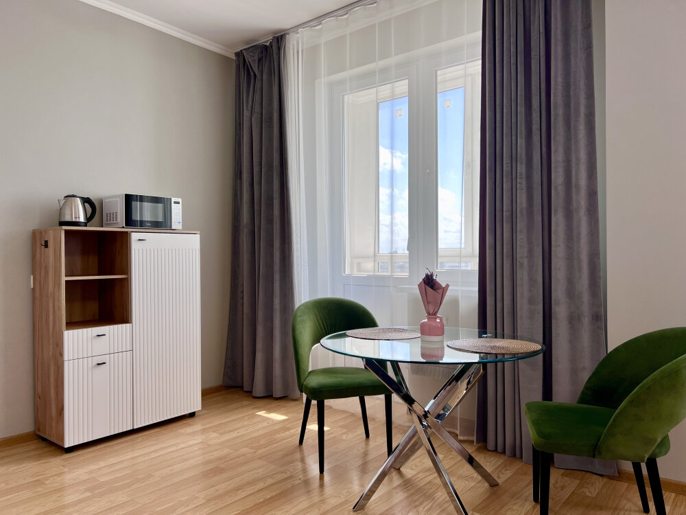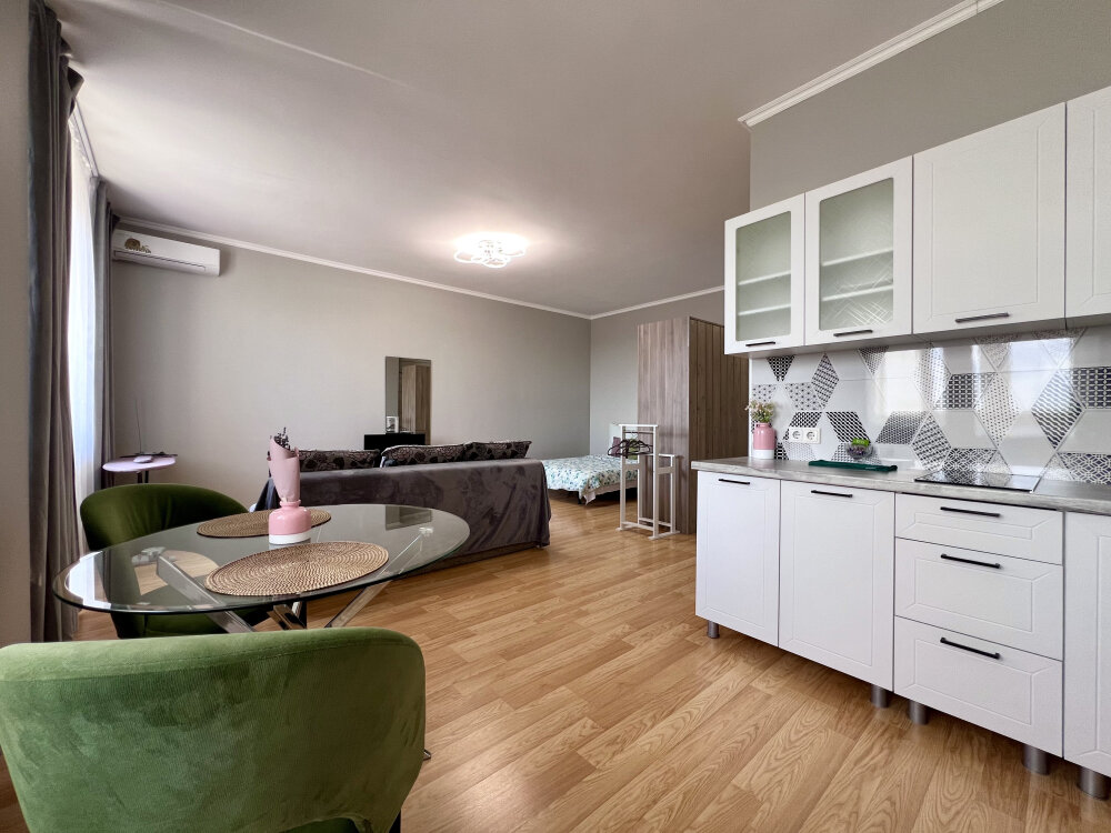 Дорогие клиенты, доброго времени суток. Представляем Вашему вниманию чистую и уютную 1-к квартиру (студию) в центре Фестивального микрорайона. Открытая парковка, где удобно и безопасно оставить машину (места всегда есть). Если Вы путешествуете с детьми, то они смогут весело провести время на оборудованной детской площадке. В шаговой доступности: остановки общественного транспорта, продуктовые магазины, кафе, банки, аптеки, стоматологические клиники, «Табрис», Implant clinic, Dental Vision и многое другое, «Патрик и Мари» в соседнем доме.
