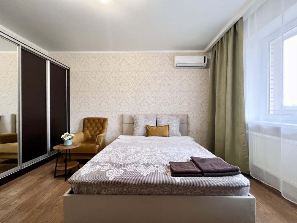 Дорогие клиенты, доброго времени суток. Представляем Вашему вниманию чистую и уютную 1-к квартиру в центре в центре Фестивального микрорайона. Локация этих апартаментов просто фантастическая. Закрытая территория двора со шлагбаумами, большая детская площадка с прорезиненной поверхностью, закрытая парковка, где Вы сможете безопасно оставить машину. В данном доме располагается торговый центр «Галерея Фестиваль». В шаговой доступности потрясающей красоты фонтаны. Рядом с апартаментами располагается потрясающая аллея со множеством ресторанов и кафе, где Вы можете погулять и отлично провести время. В шаговой доступности остановки общественного транспорта (остановки прямо у дома), большое количество продуктовых магазинов, магазин Granat прямо во дворе дома, рестораны, банки, аптеки, стоматологические клиники, «Табрис» находится в 2 минутах ходьбы, Implant clinic, Dental Vision и многое другое. До центральной улицы Красная - всего 1,5 км.