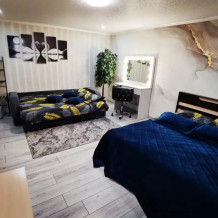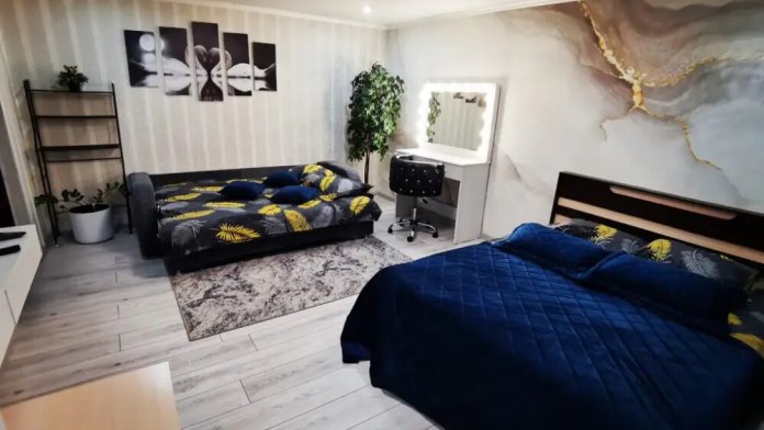 Двуспальная кровать, раскладной диван, Smart TV телевизор, Wi-Fi, полностью оборудованная кухня: плита, чайник, холодильник, вся необходимая посуда и принадлежности. Стиральная машина, утюг, фен. Чистое постельное бельё.
