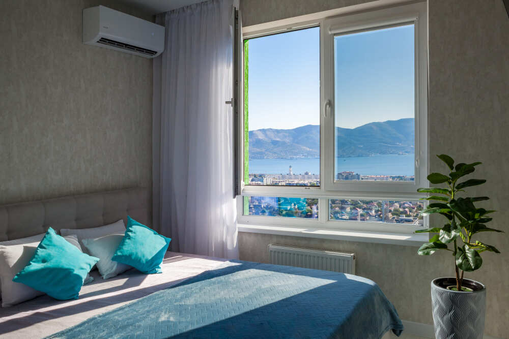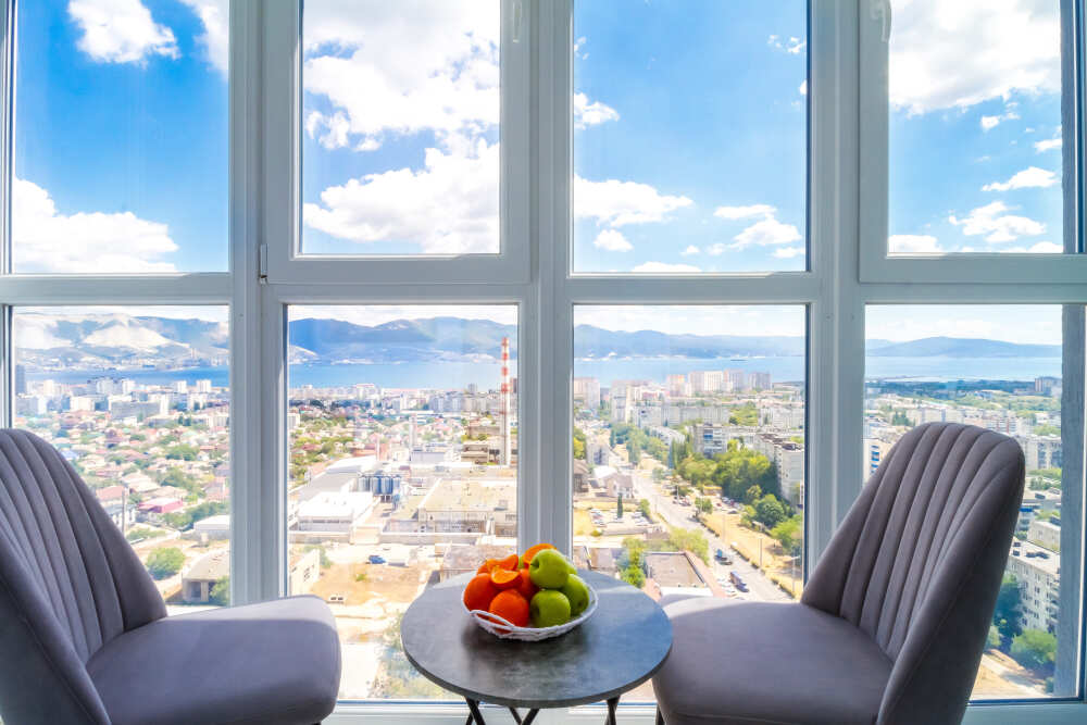 Евродвушка с отдельной спальней и кухней гостиной на 18 этаже в новом жилом комплексе «Клевер» с шикарным видом на бухту, открытое море и горы.️ ️Закрытый двор с парковкой и видеонаблюдением. Во дворе большая детская площадка, спортивная площадка, футбольное поле, продуктовый магазин и столовая.