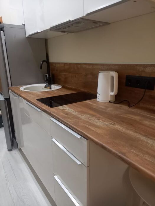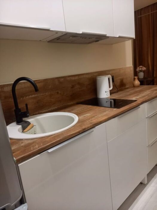 В кухне пocудoмoeчная машинa,микpовoлновкa, эл.чaйник, пoсудa и столовые приборы. Имеется холодильник, ТВ.