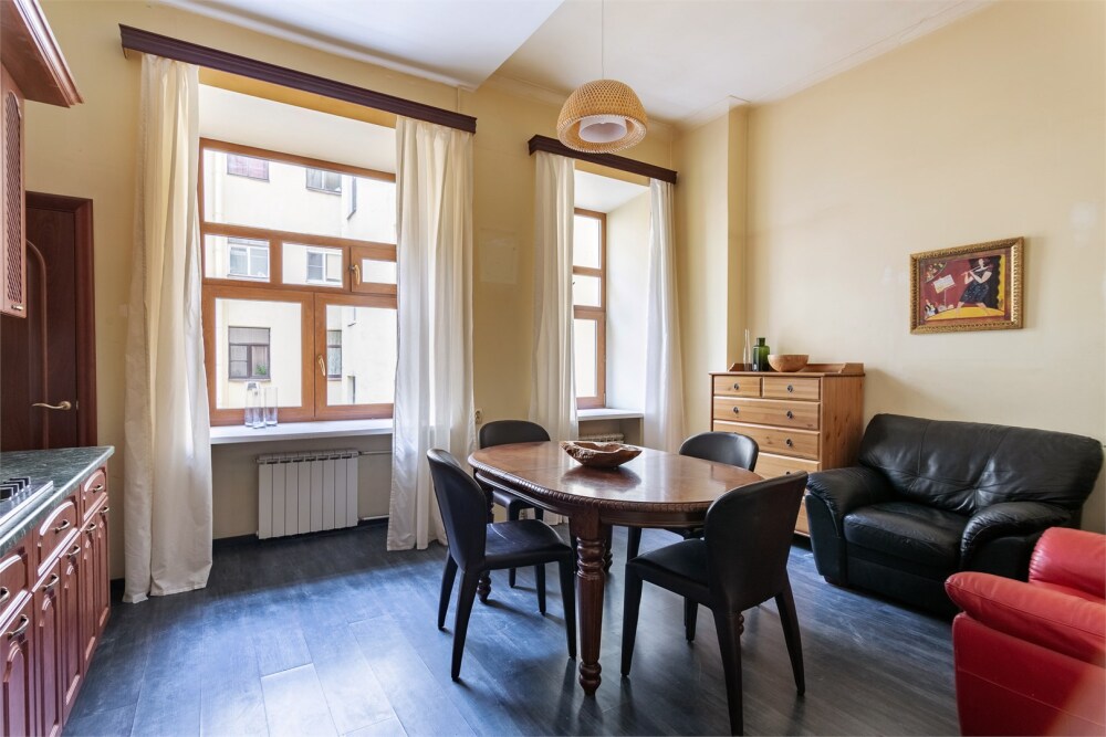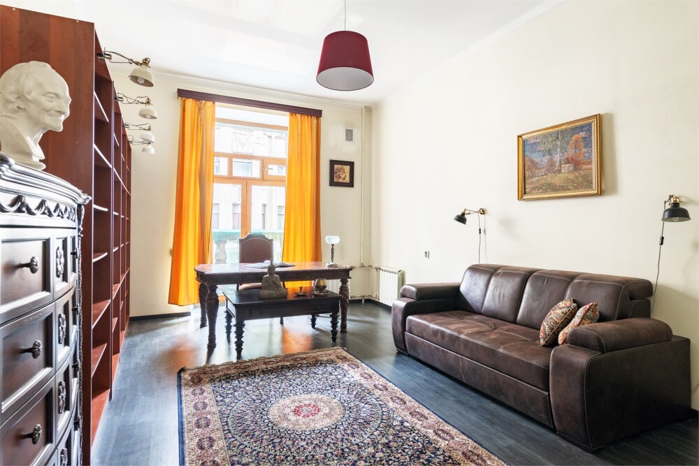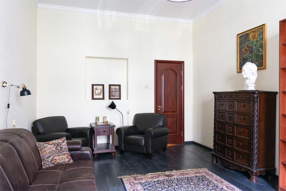 Просторная двухкомнатная квартира в Василеостровском районе с антикварной мебелью и библиотекой.