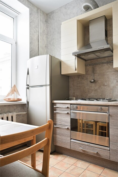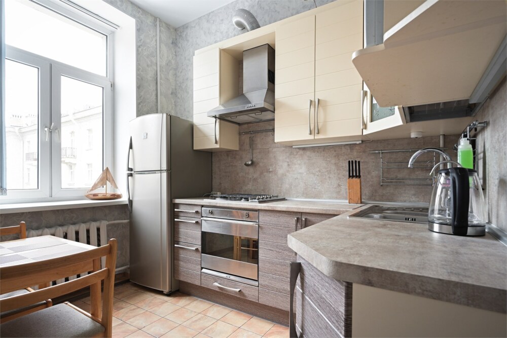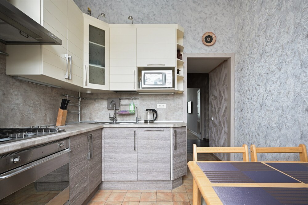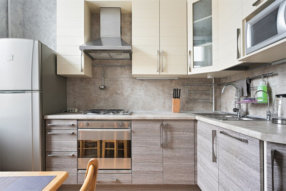 - Кухня: газовая плита, духовка, холодильник, стиральная машина.