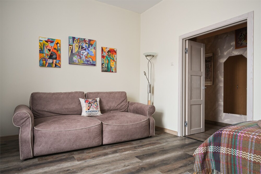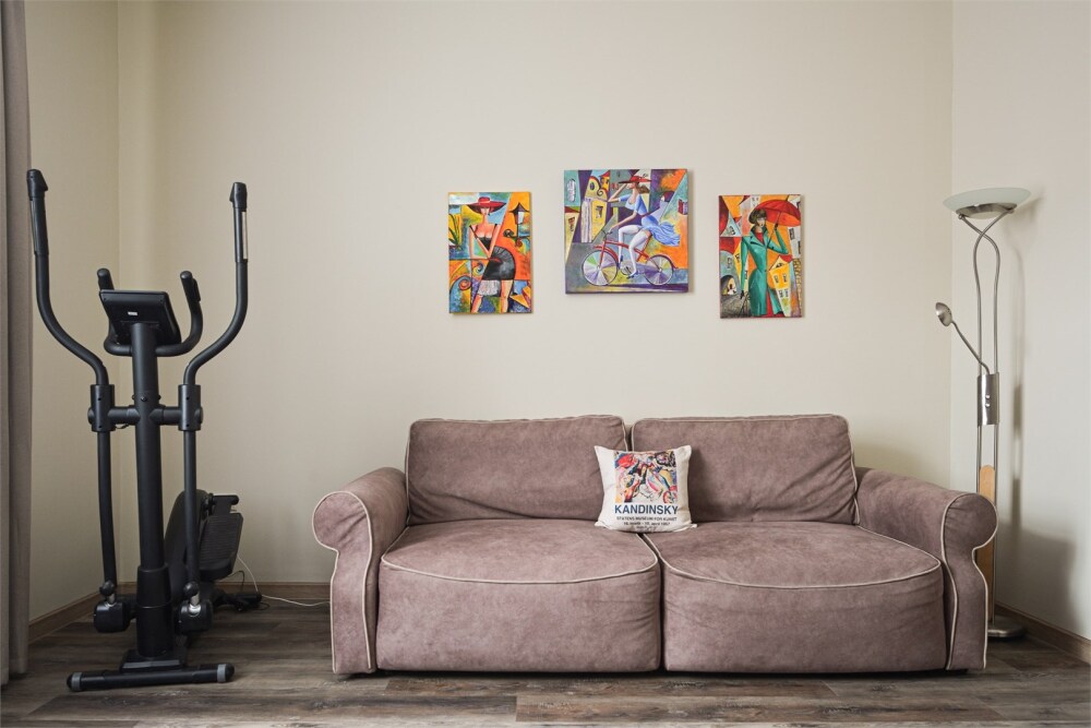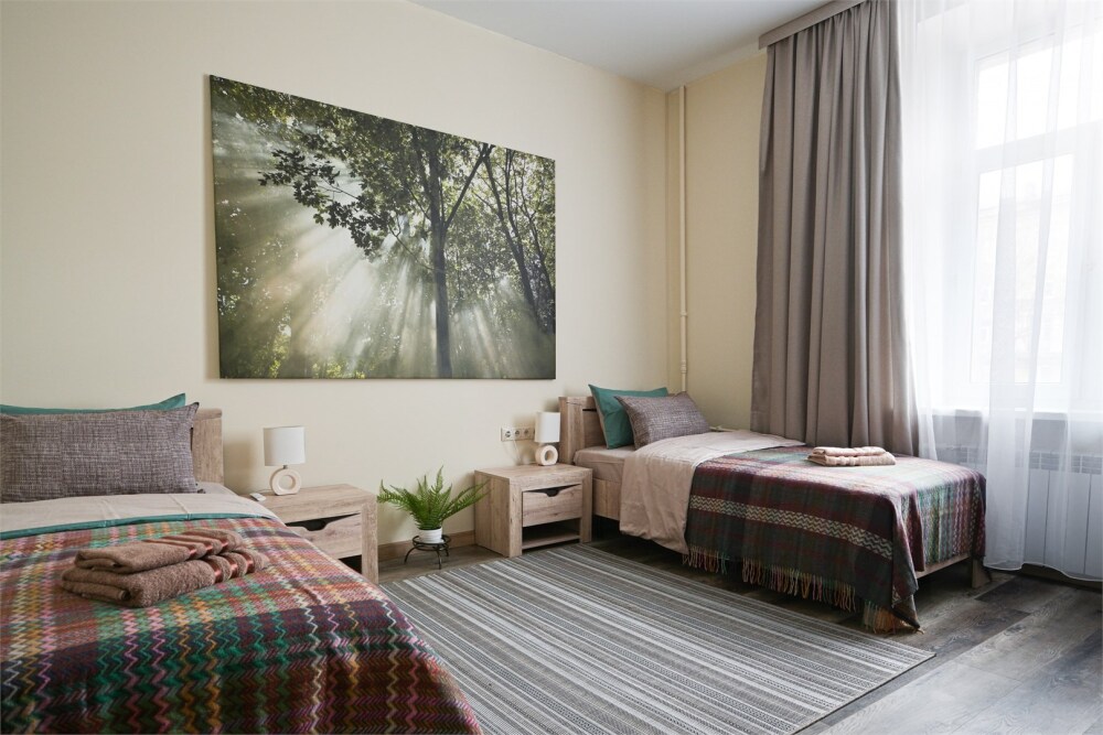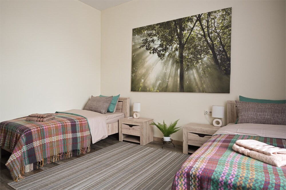 - Удобная двуспальная кровать 160 см с ортопедическим матрасом и две односпальные кровати в комнатах.
