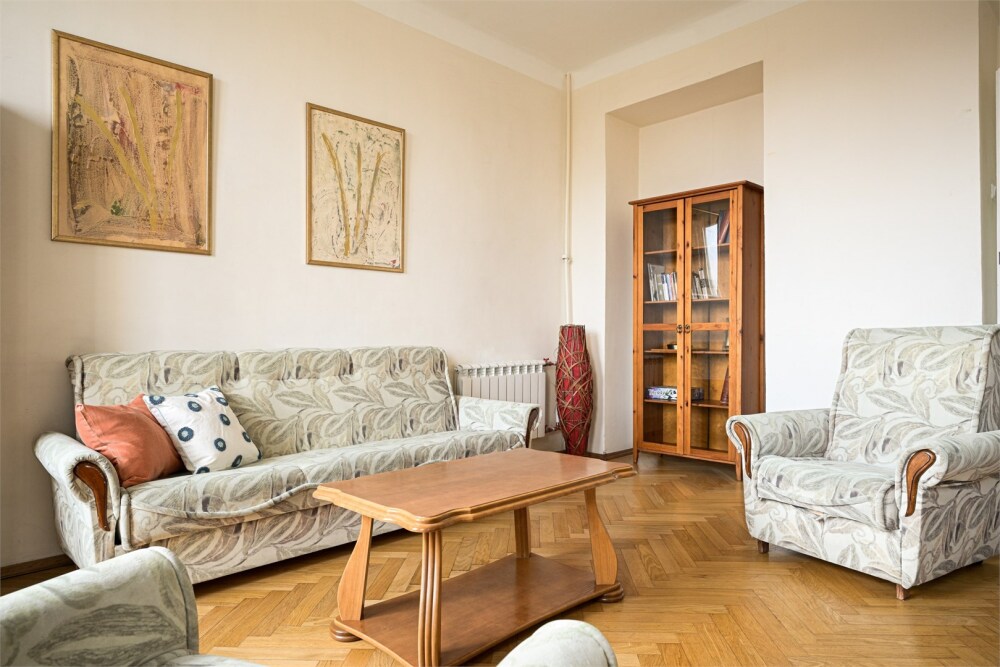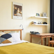- Две удобные двуспальные кровати 160 см, кушетка, раскладушка в спальнях и диван в гостиной.