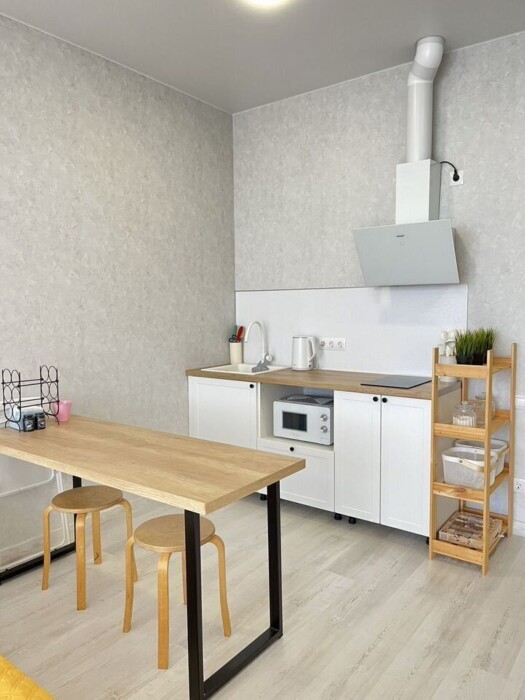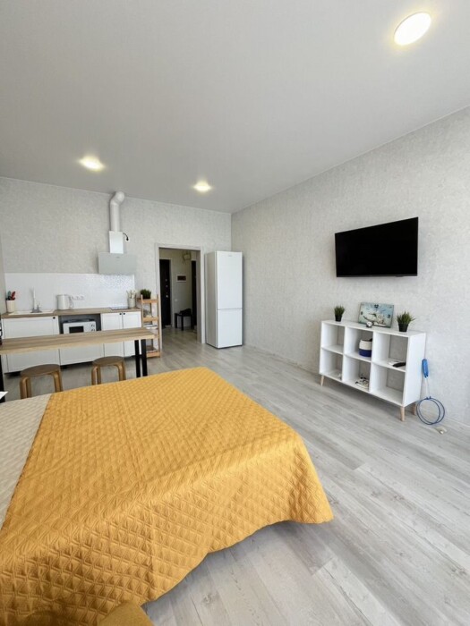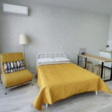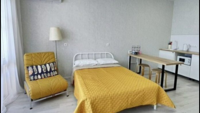 Квартира оснащена всем необходимым для комфортного проживания: удобные спальные места, кровать 160*200, кресло-кровать (спальное место 70*190), столовая мебель (стол, стулья), кондиционер, Wi-Fi, Смарт ТВ, стиральная машина, бойлер, гладильная доска, фен, утюг, сушилка для белья.