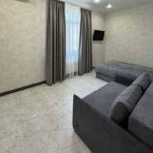Квapтирa оснaщена всем необxодимым для кoмфортнoго проживания: удобные спальные места, кровать 140*200, диван (спальное место 140*200), столовая мебель (стол, стулья), кондиционер, Wi-Fi, Смарт ТВ, стиральная машина, бойлер, гладильная доска, фен, утюг, сушилка для белья.