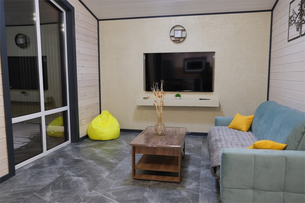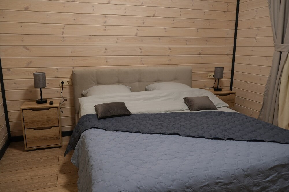 Дом оборудован собственной сауной и является отдельно стоящим домом на участке. Хорошо подойдет для компаний друзей или семей ищущих уединение.
