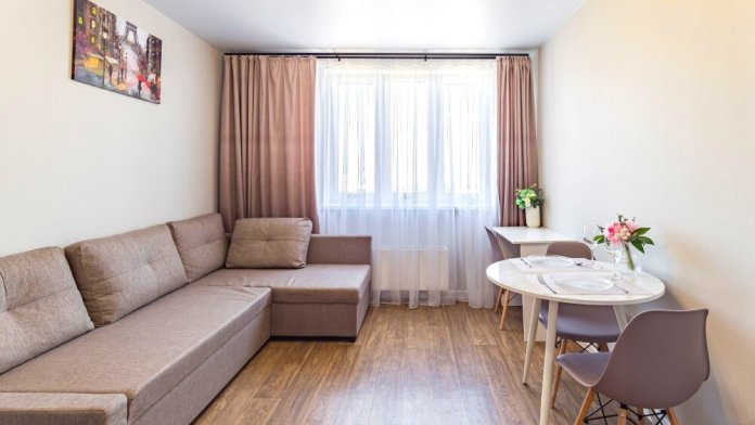 Стильная студия площадью 24 м² на 12 этаже современного дома. Идеально подходит для пары из 2 человек желающих насладиться комфортом.