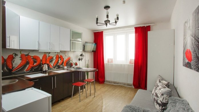 - полностью оборудованная кухня (холодильник, плита, СВЧ-печь, чайник, набор посуды);