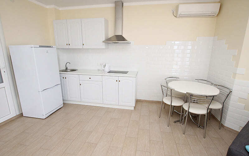 В апартаментах Вы найдёте кондиционер, полностью оборудованную кухню, телевизор с плоским экраном. В ванной комнате есть душ и бесплатные туалетно-косметические принадлежности. На территории есть мангальная зона и терраса. Собственный песчаный пляж оснащён навесами и качелями, что делает отдых ещё более приятным.