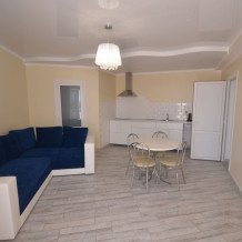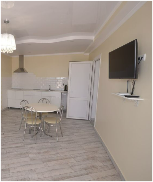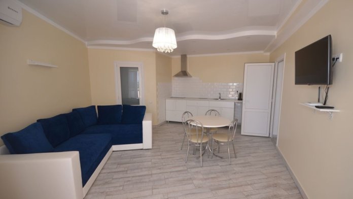 В апартаментах Вы найдёте кондиционер, полностью оборудованную кухню, телевизор с плоским экраном. В ванной комнате есть душ и бесплатные туалетно-косметические принадлежности. На территории есть мангальная зона и терраса. Собственный песчаный пляж оснащён навесами и качелями, что делает отдых ещё более приятным.