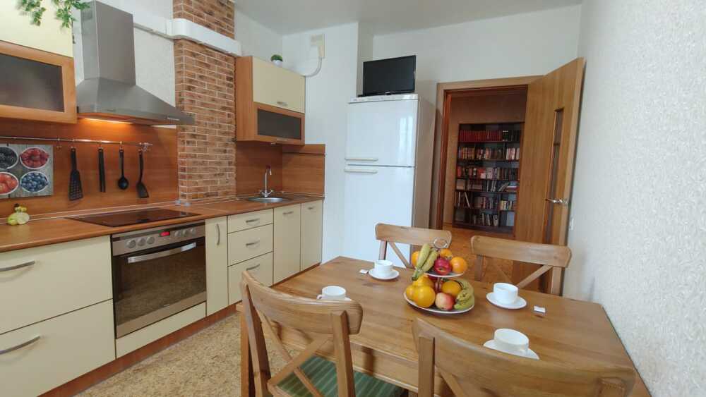 Комфорт: Кровать, 2 дивана, постельное белье; полотенца; стиральная машина, сушилка, гладильная доска, утюг; шкаф-купе; фен; кухонный гарнитур; холодильник; плита с духовкой; микроволновая печь свч; чайник; вся необходимая посуда для приготовления и приема пищи. Шторы blасkоut не пропускают свет, спать очень комфортно.
