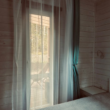 - спальня с большой двуспальной кроватью 160/200 и двумя большими окнами с видом на Карельский лес, комод для личных вещей;