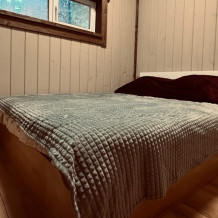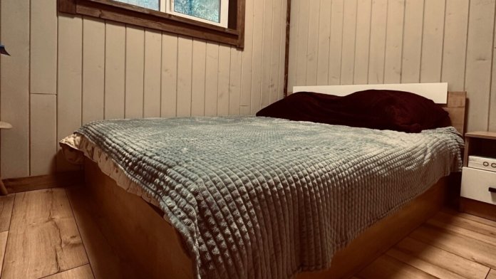 - спальня с большой двуспальной кроватью 160/200 и панорамным окном с видом на Карельский лес, комод для личных вещей;