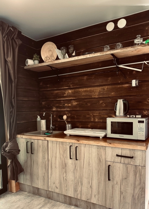 - кухня оснащена холодильником, микроволновой печью, индукционной плитой на 2 конфорки, чайником.