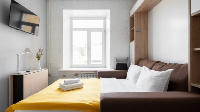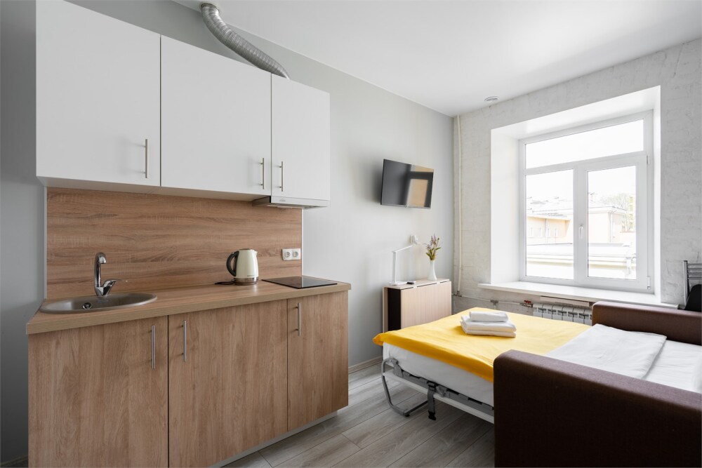 Студия в Петроградском районе с видом на улицу для двоих гостей у метро «Спортивная».