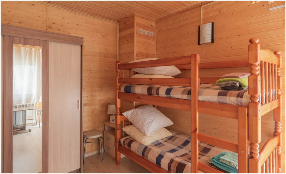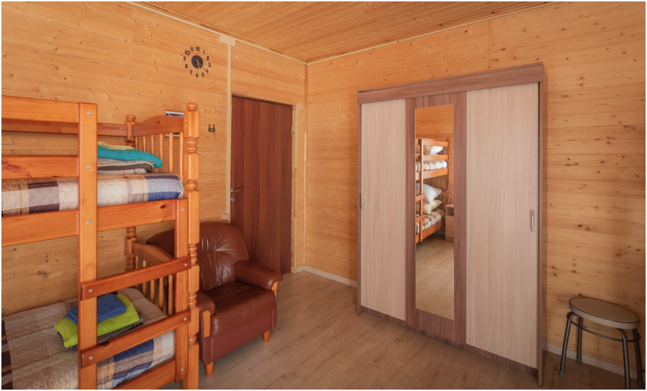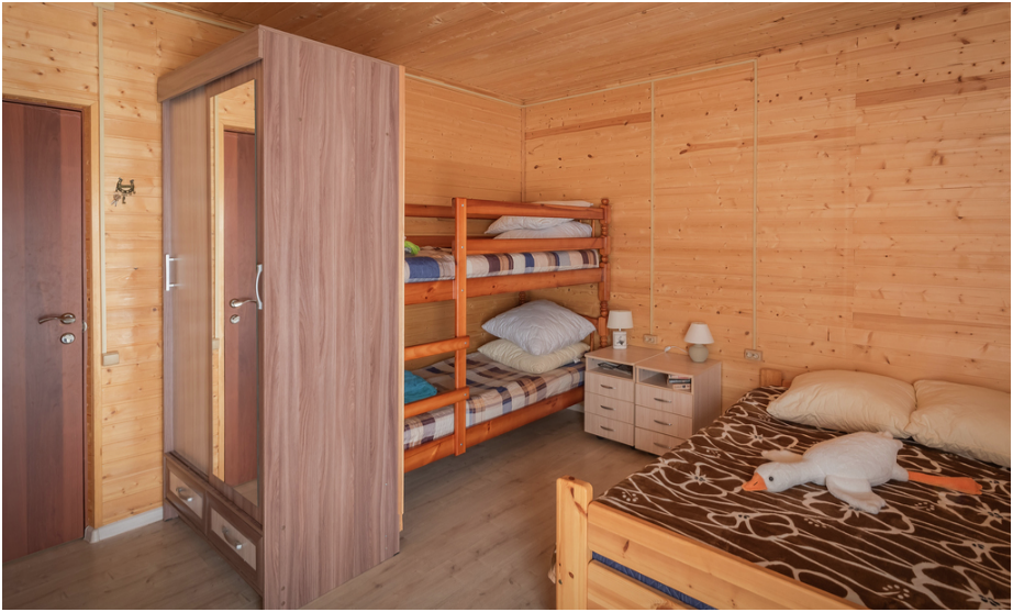 Дом состоит из 2 спален, хорошо оборудованной кухни с обеденной зоной, smart-телевизором, электроплитой, чайником, микроволновой печью, посудомоечной и стиральной машиной. В первой спальне две двухъярусных кровати, шкаф для одежды, столик, выход на террасу, во второй спальне 1 двуспальная и 1 двухъярусная кровать. К услугам гостей бесплатные парковка и Wi-Fi в доме и на территории.