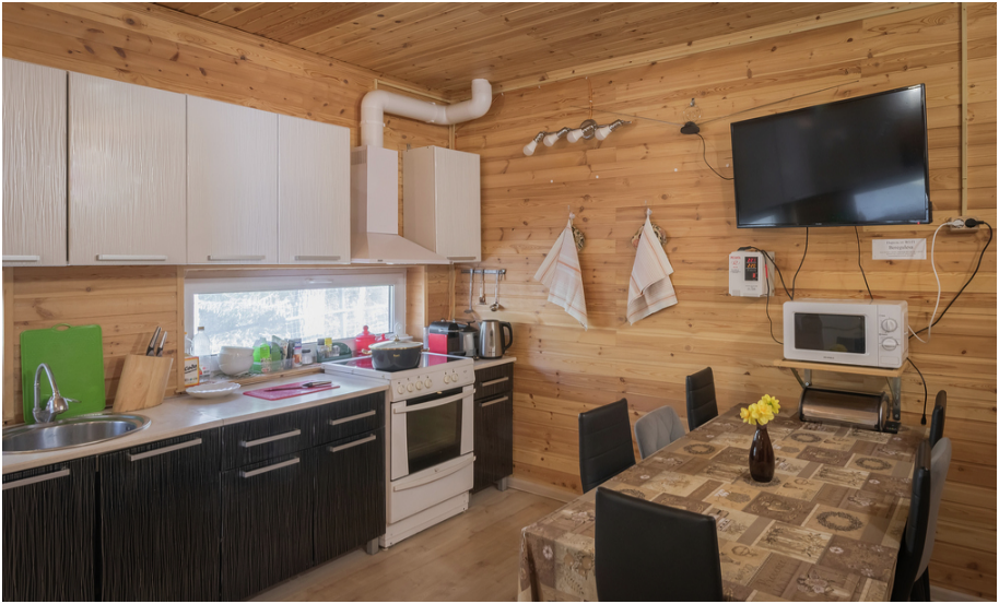 Этот коттедж хорош как для кратковременного проживания компании до 8-ти человек, так и в качестве дома для семейного отпуска.