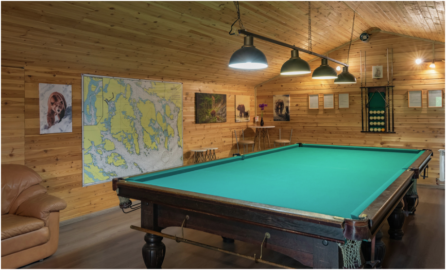 На 2-м этаже находится зал с 12-ти футовым столом для русского бильярда (бесплатно). Любители этой игры смогут также оценить вид на Ладогу с балкона бильярдного зала, особенно на закате.