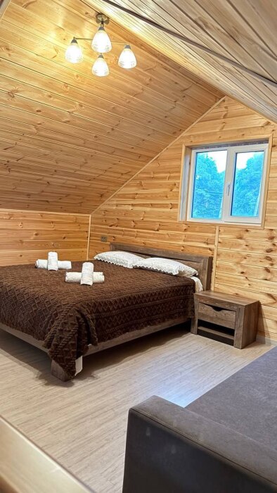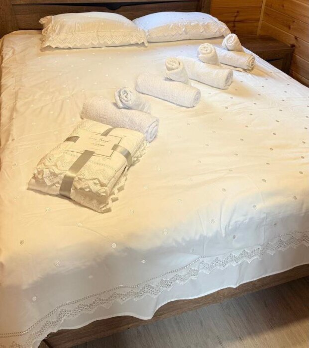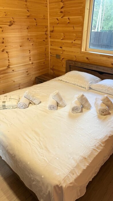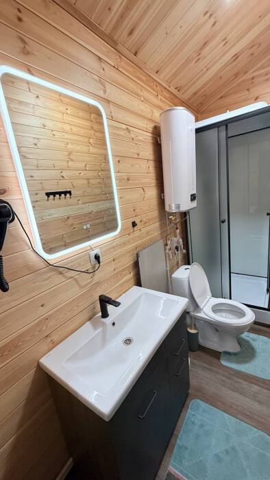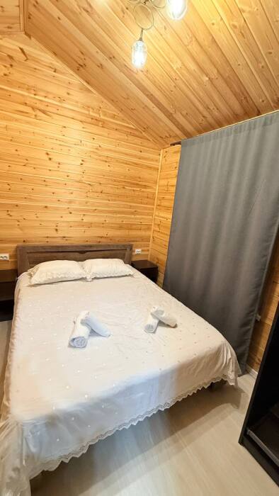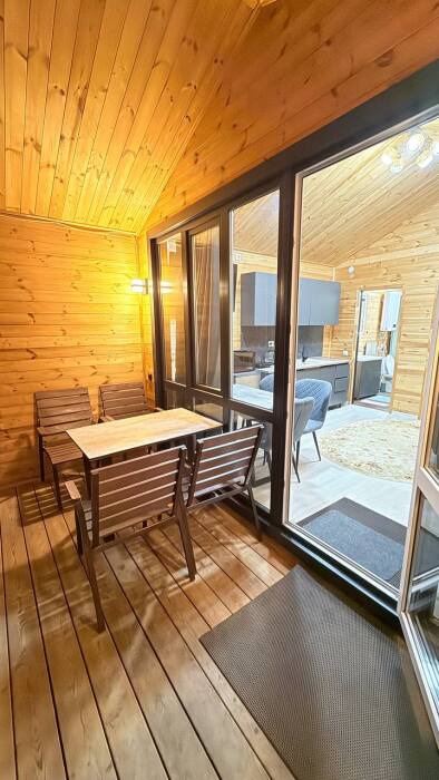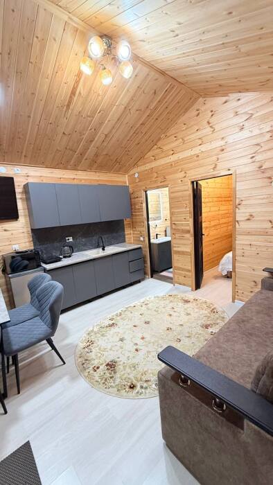 Гостям, для проживания предлагаются уютные домики. Есть: холодильник, микроволновая печь, вешалка для одежды, Smart-TV, Wi-Fi, раскладной диван, спальная комната, ванная со всеми удобствами, стол, стулья, своя кухня, оборудованная всем необходимым для готовки.