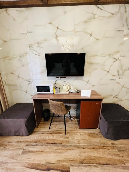 Есть мини-кухня (холодильник, чайник, микроволновка, посуда), телевизор, wi-fi️, душевая совмещённая (фен, полотенца, душевые принадлежности, одноразовые тапочки)️.