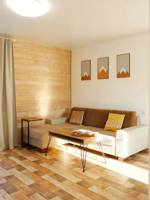 Оформлен в скандинавском стиле и рассчитан на проживание 6 человек (дополнительно может быть предоставлена детская кроватка).