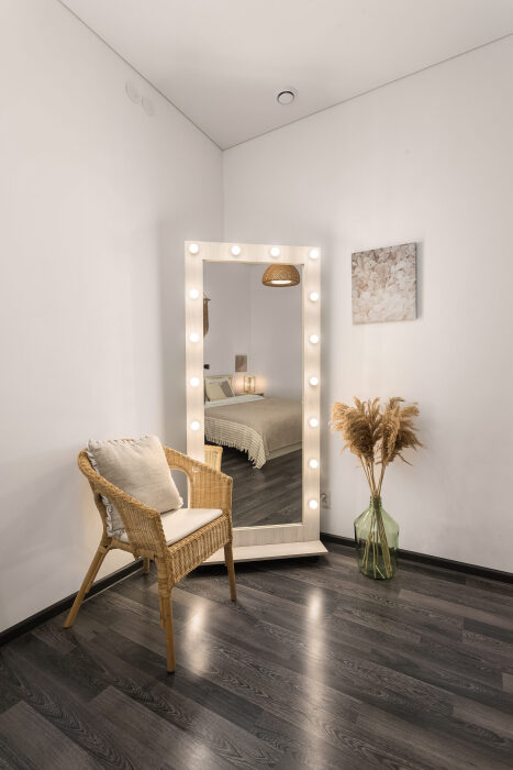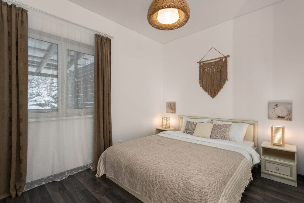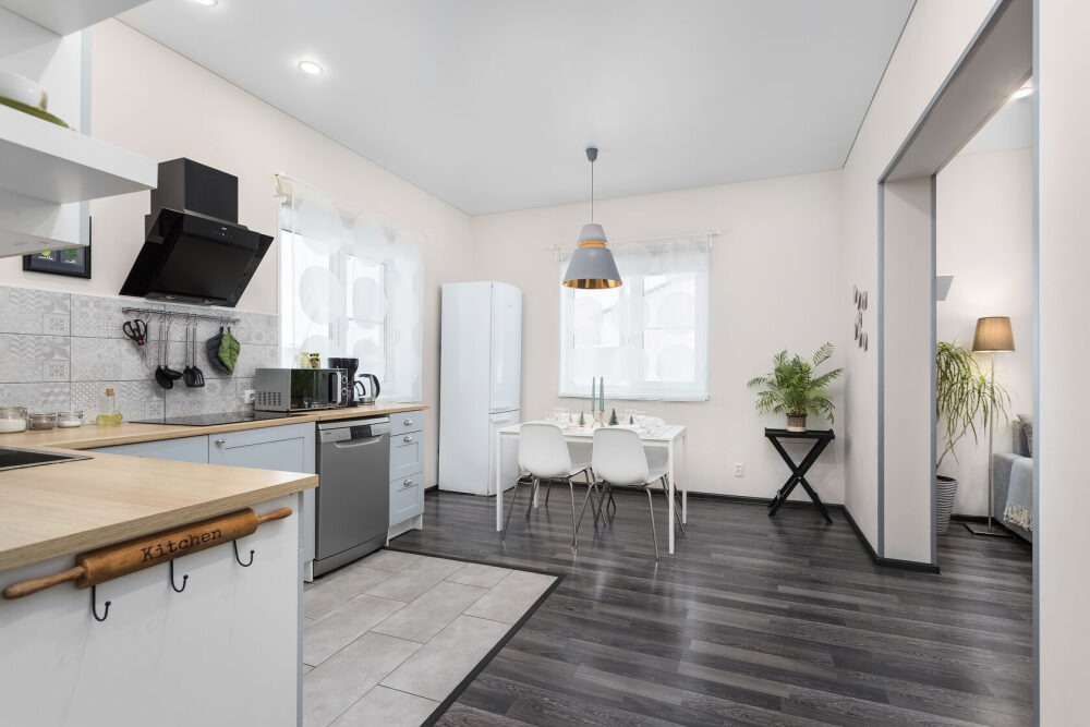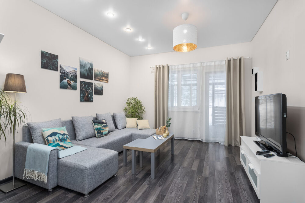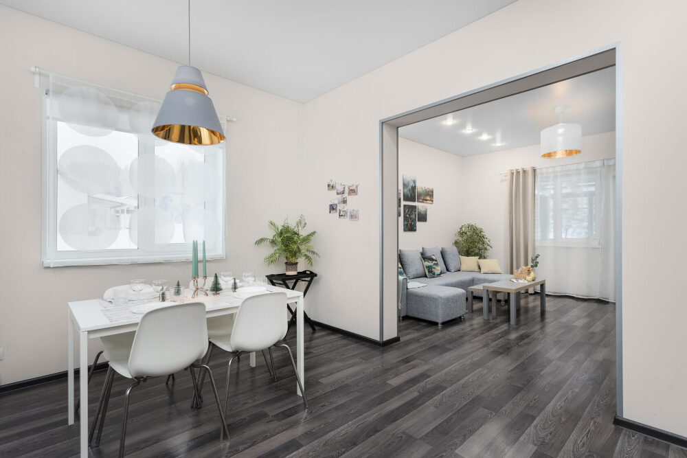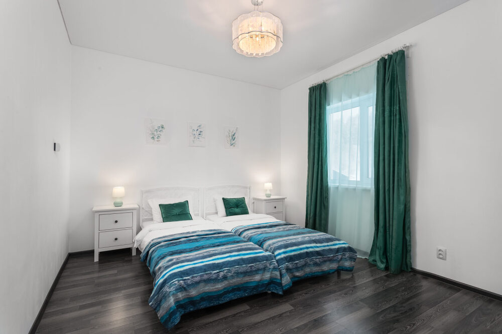 Оформлен в скандинавском стиле и рассчитан на проживание 6 человек (дополнительно может быть предоставлена детская кроватка).