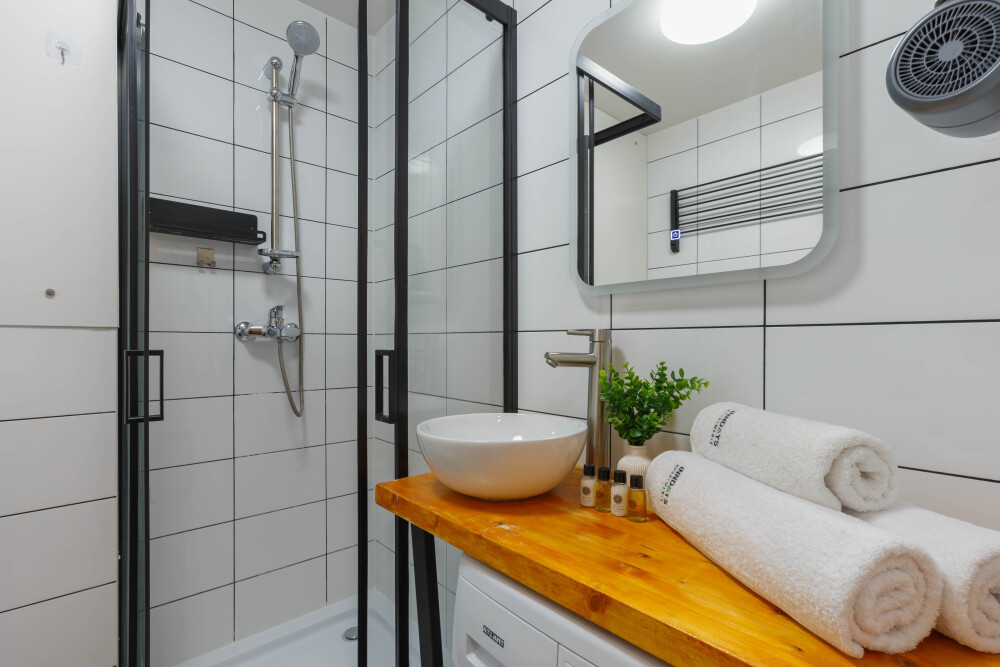 Квартира оборудована всем необходимым для комфортного отдыха. К Вашим услугам мы предоставляем высокоскоростной Wi-Fi и жк-телевизор с большим пакетом каналов, набор косметических принадлежностей, всю необходимую бытовую технику, посуду и столовые приборы.