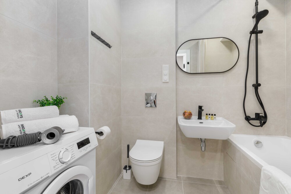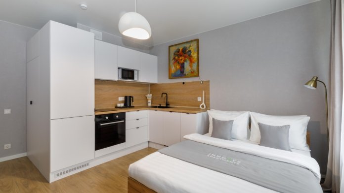 Квартира оборудована всем необходимым для комфортного отдыха. К Вашим услугам мы предоставляем высокоскоростной Wi-Fi и жк-телевизор с большим пакетом каналов, набор косметических принадлежностей, всю необходимую бытовую технику, посуду и столовые приборы.