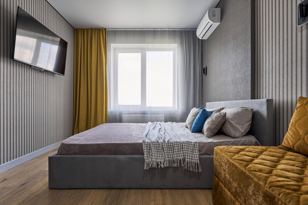 - 2 двуспальные кровати (160×200 см, ортопедические матрасы);