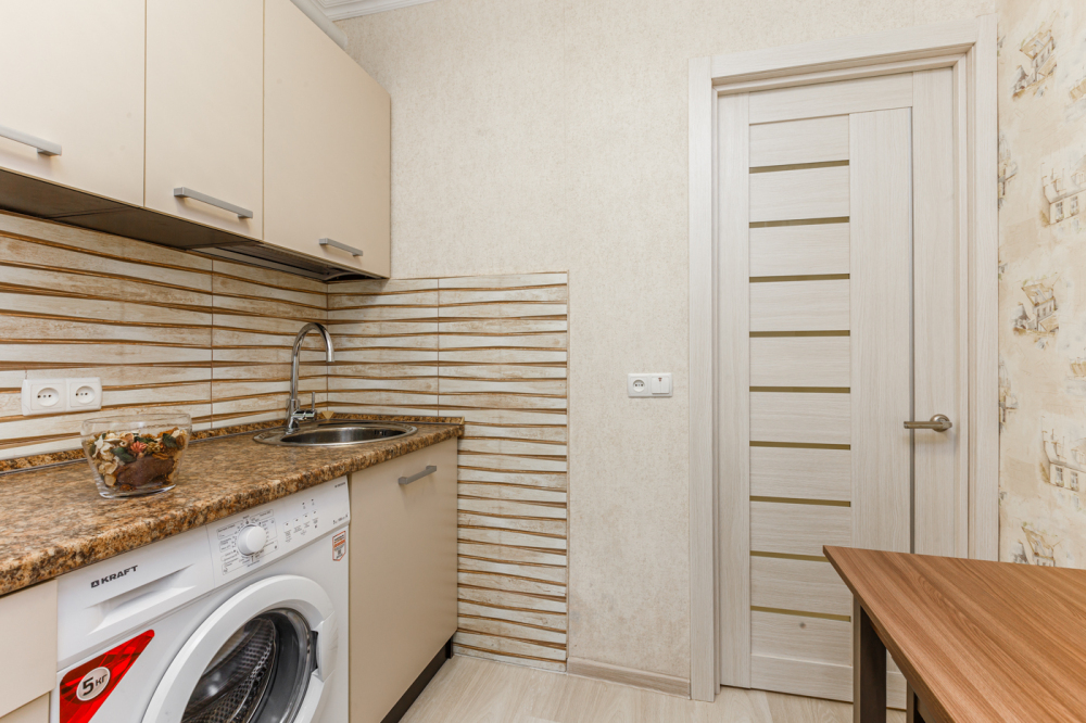 Квартира имеет хорошую планировку, разделена на 2 спальни с двуспальной кроватью в одной комнате и двуспальным диваном в другой комнате. Кухня оборудована всем необходимым для приготовления вкусных обедов. В квартире имеется вся необходимая бытовая техника: жк-телевизор, холодильник, стиральная машина, электрический чайник, свч, фен, утюг, гладильная доска, на кухне вся необходимая посуда. Для приятного времяпрепровождения к Вашим услугам безлимитный интернет Wi-Fi и кабельное TV.