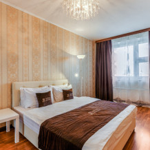 В комнате удобная, двуспальная кровать, большой шкаф, комод, диван, телевизор. Есть балкон. Кухня оборудована всем необходимым для приготовления вкусных обедов. В квартире имеется вся необходимая бытовая техника: телевизор, холодильник, стиральная машина, электрический чайник, свч, фен, утюг, гладильная доска, на кухне вся необходимая посуда. Для приятного времяпрепровождения к Вашим услугам безлимитный интернет Wi-Fi и кабельное TV.