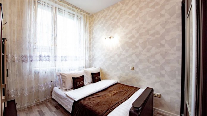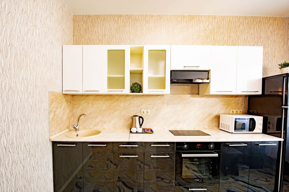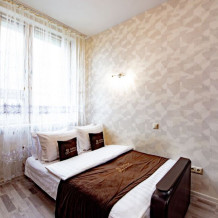 Небольшая светлая комната может с комфортом разместить двоих гостей на удобной кровати. Кухня оборудована всем необходимым для приготовления вкусных обедов. В квартире имеется вся необходимая бытовая техника: телевизор, холодильник, стиральная машина, электрический чайник, СВЧ, фен, утюг, гладильная доска, на кухне вся необходимая посуда. Для приятного времяпрепровождения к вашим услугам безлимитный интернет Wi-Fi и кабельное TV.