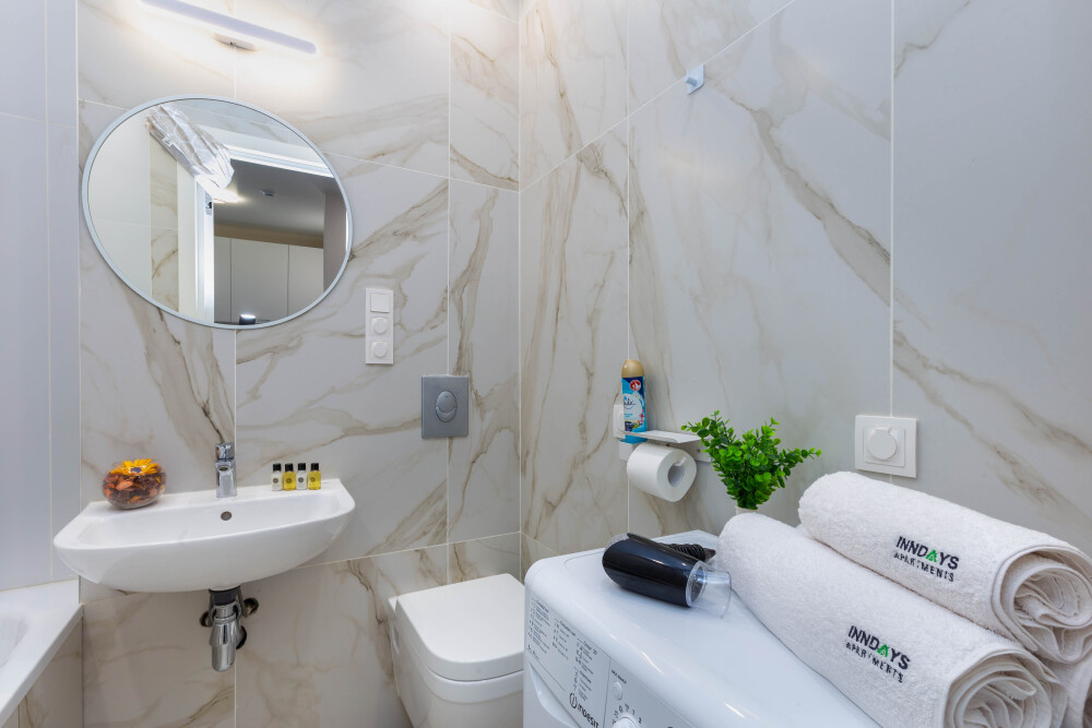 Квартира оборудована всем необходимым для комфортного отдыха. К вашим услугам мы предоставляем высокоскоростной Wi-Fi и ЖК телевизор с большим пакетом каналов, набор косметических принадлежностей, всю необходимую бытовую технику, посуду и столовые приборы.