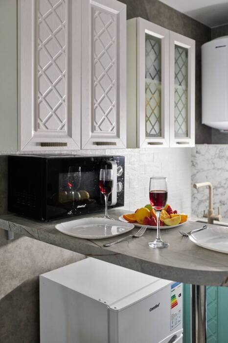 - оборудованная кухня (холодильник, микроволновая печь, варочная панель, чайник);