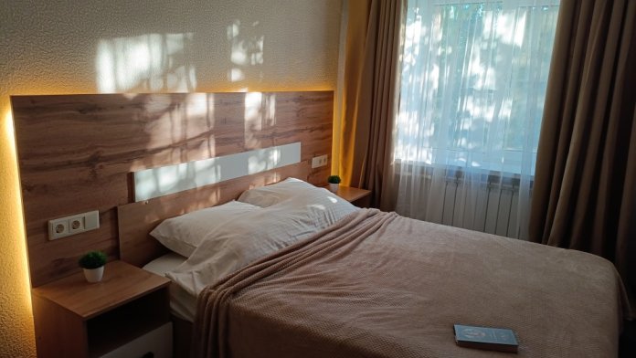 Спальня: двухспальная кровать с новым матрасом и комплектом постельного белья, раскладной диван на два человека (комплект постельного для дивана предоставляется за дополнительную плату), телевизор.