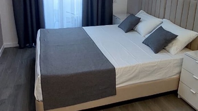 Двуспальная кровать, Smart TV телевизор, кондиционер, чайник, холодильник, микроволновая печь. Утюг, фен. Чистое постельное бельё.