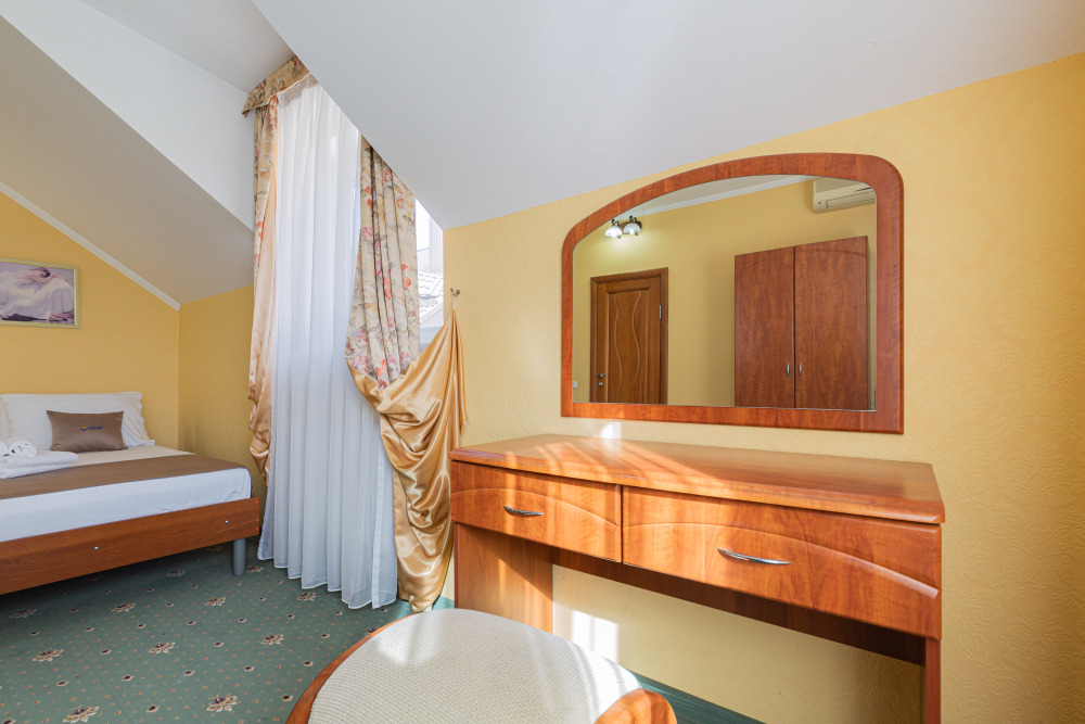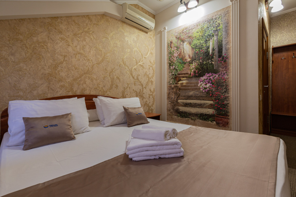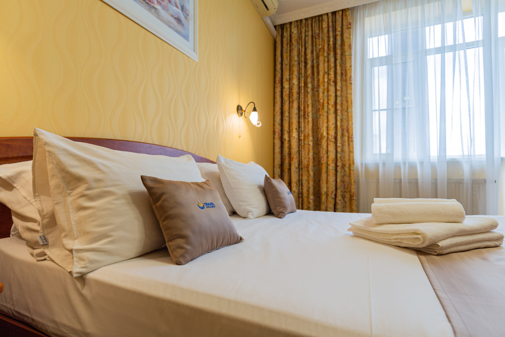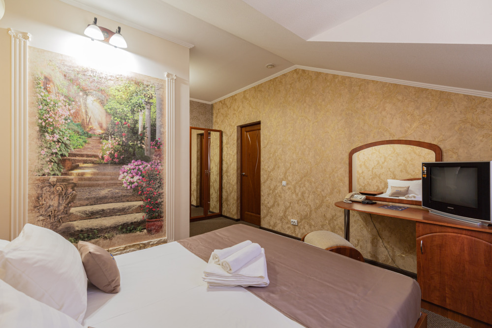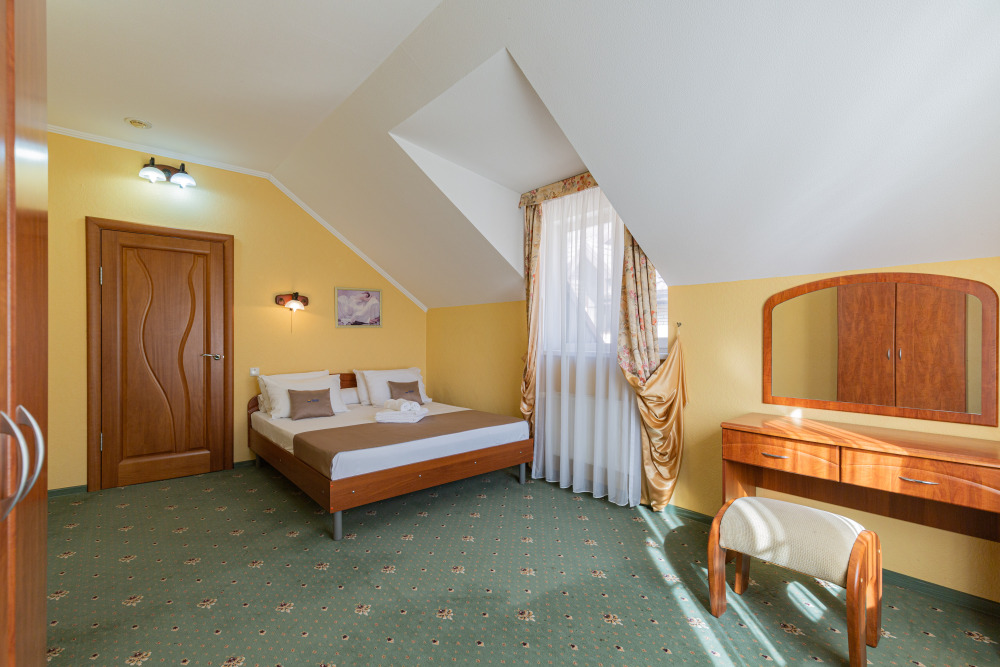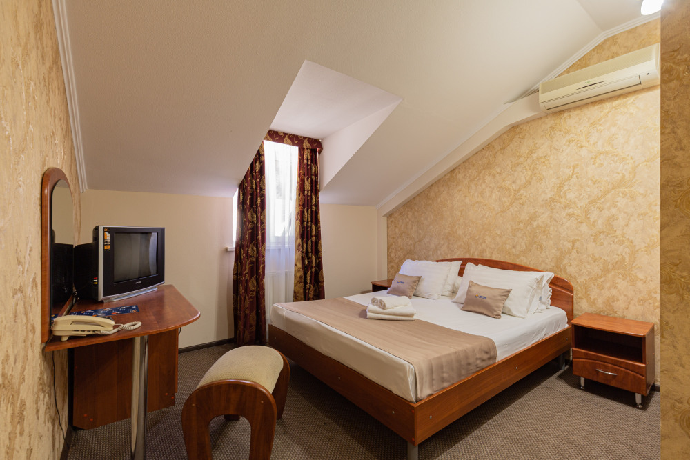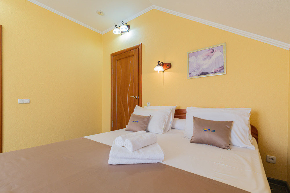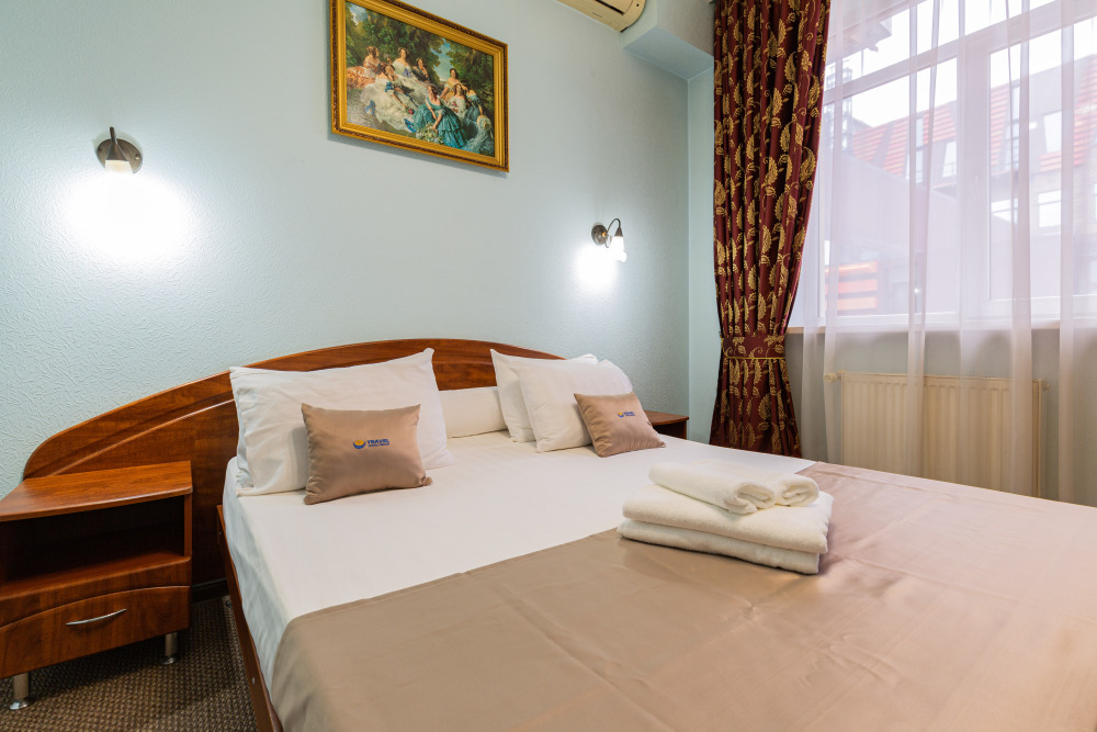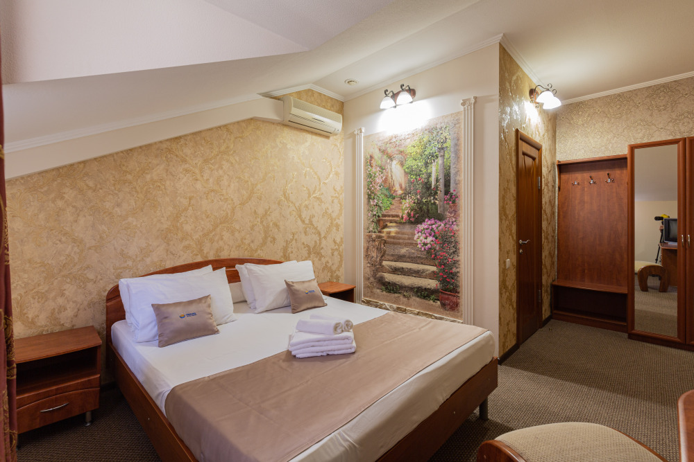 Наш номерной фонд включает 23 номера — от стандартных до люксовых категорий. Все номера оснащены кондиционерами и продуманы до мелочей, чтобы вы чувствовали себя как дома.