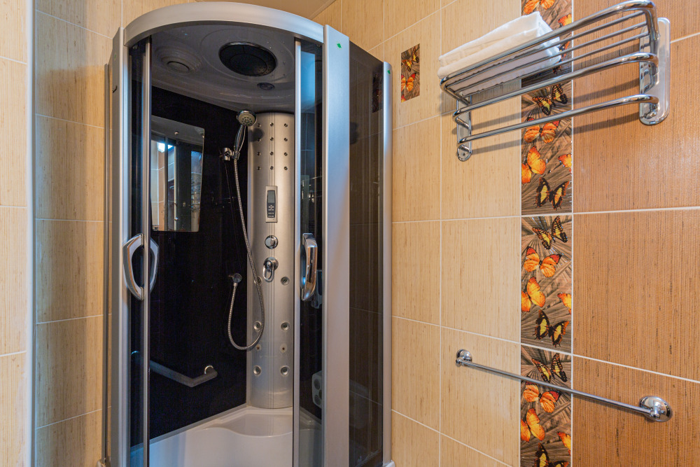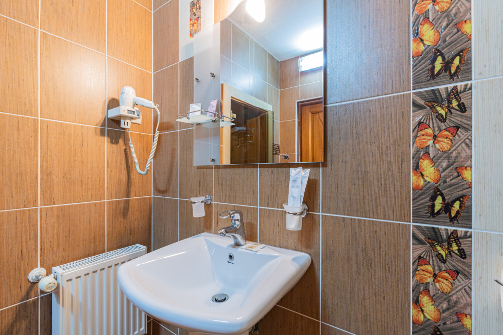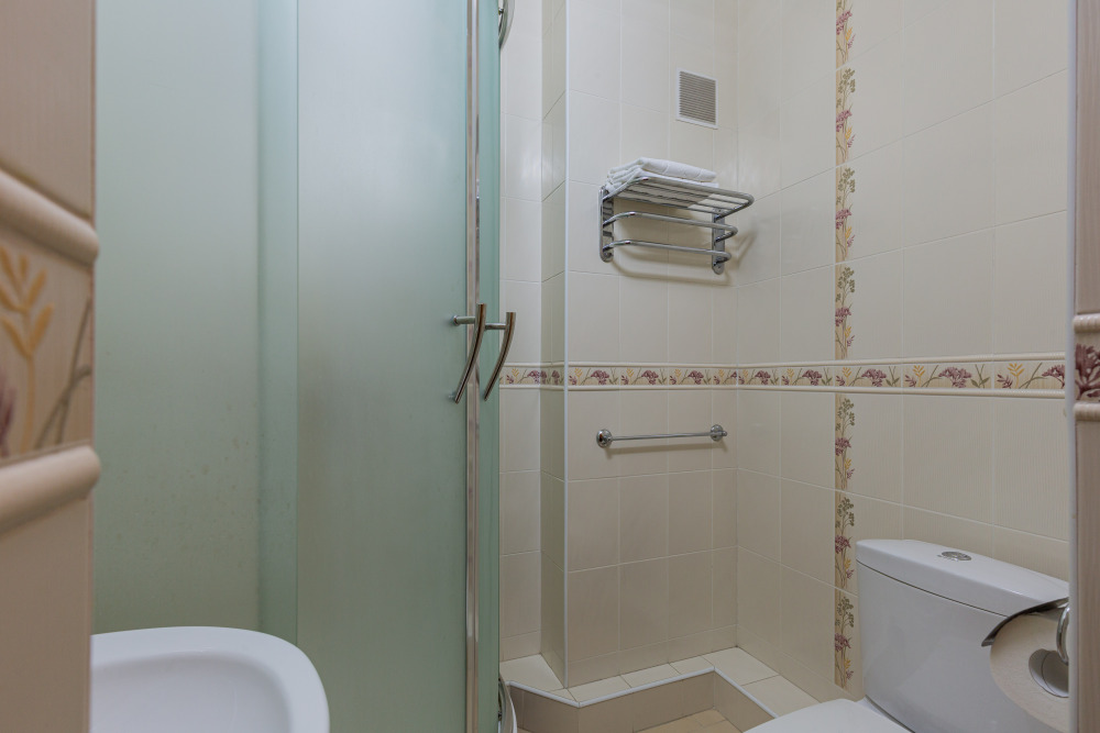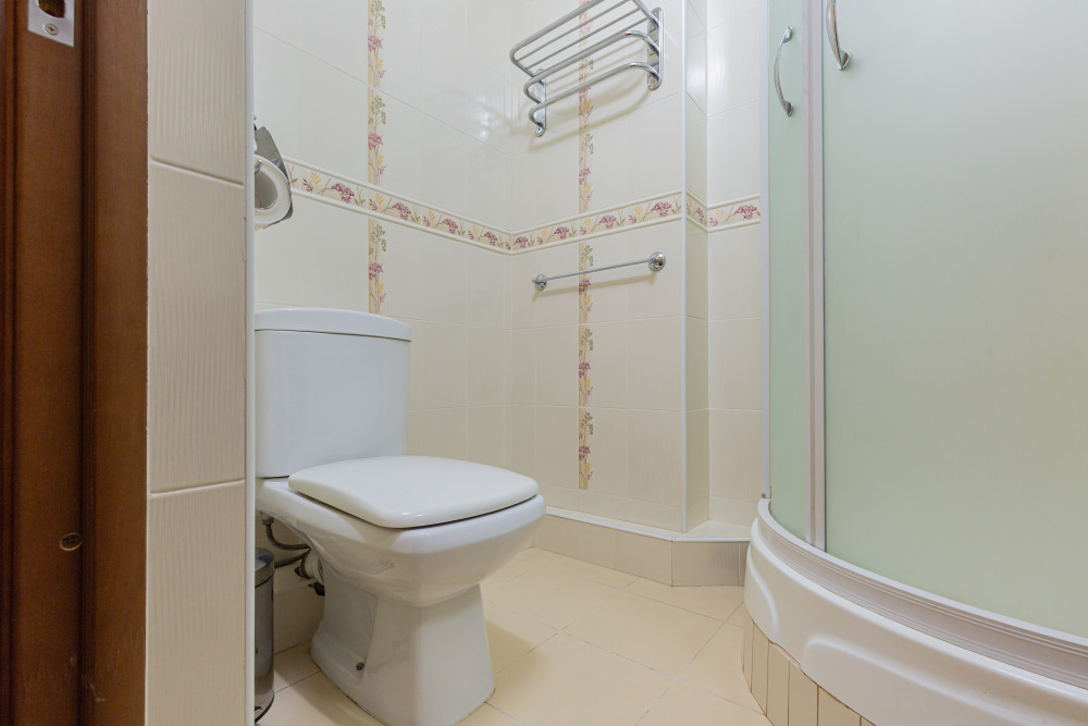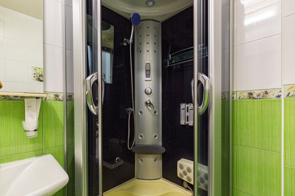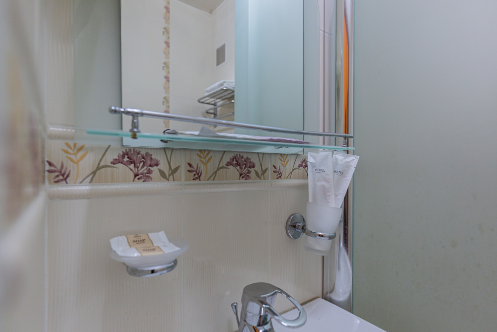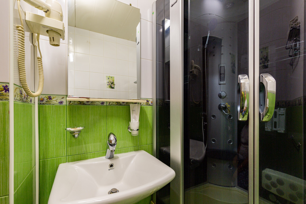 Ванная комната оборудована душевой кабиной, феном, набором полотенец и базовыми гигиеническими принадлежностями — всё, что нужно для комфортного начала и завершения дня.