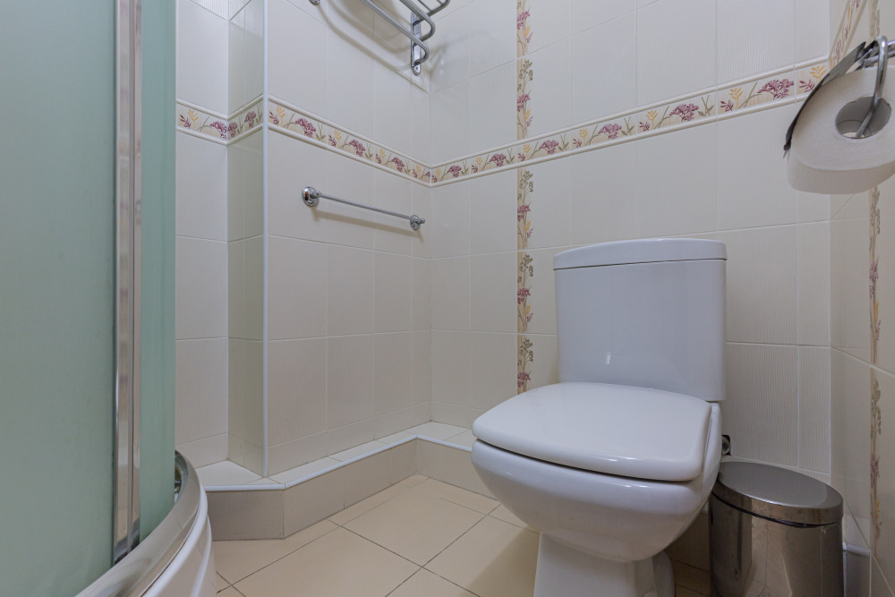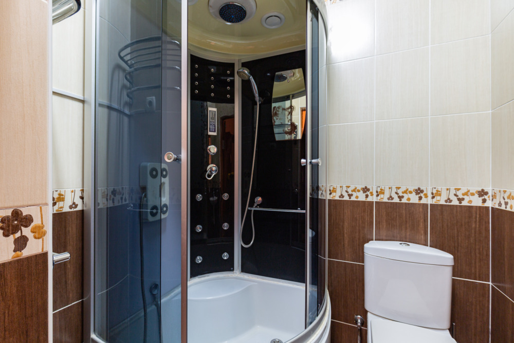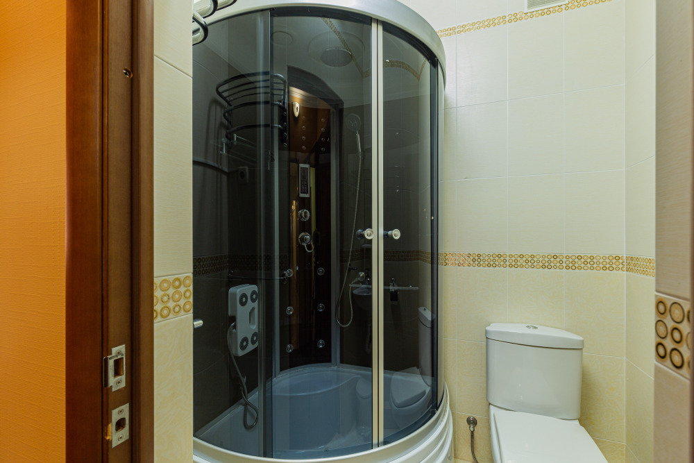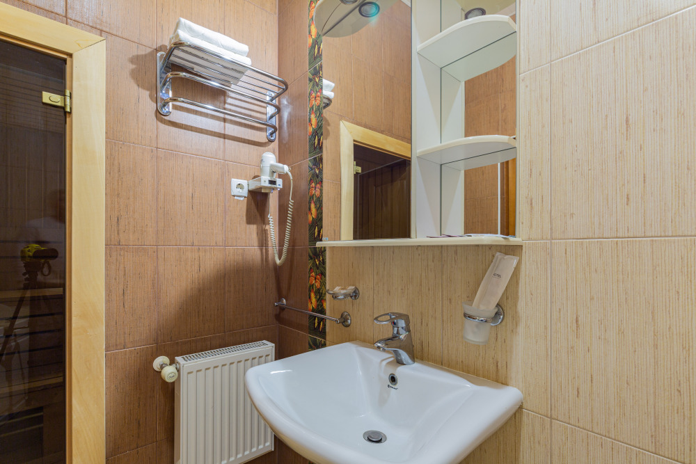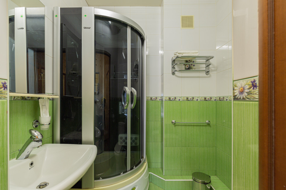 В ванной комнате — душевая кабина и фен. Гостям предоставляются полотенца, тапочки и базовые косметические принадлежности.