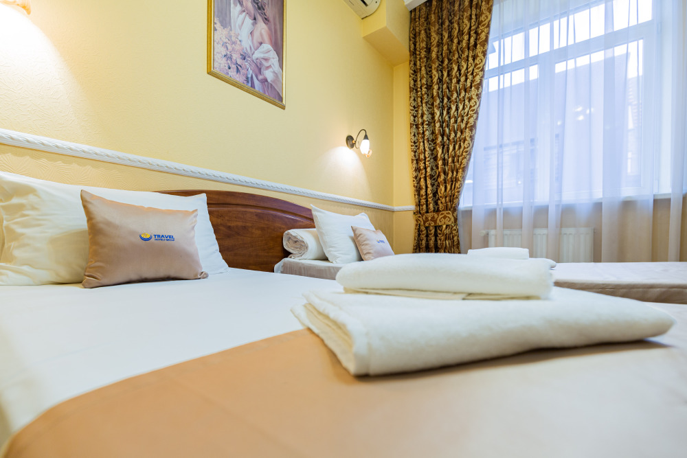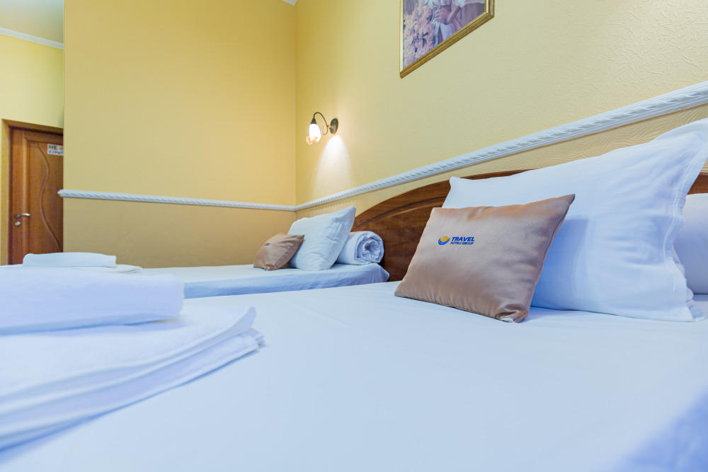 Номер категории «Комфорт» — это практичное и уютное решение для размещения семьи, компании друзей или деловой поездки.