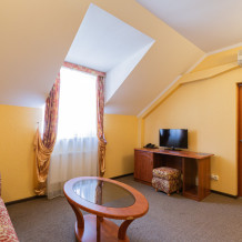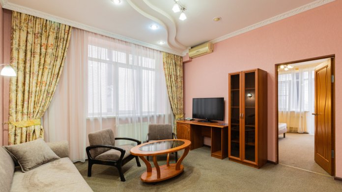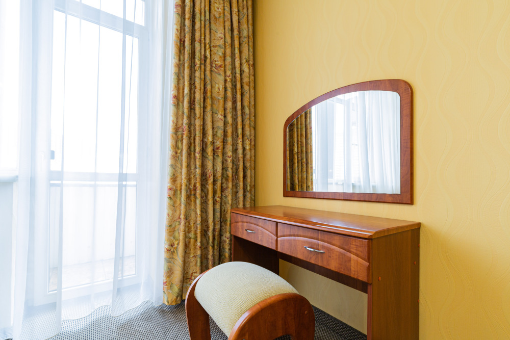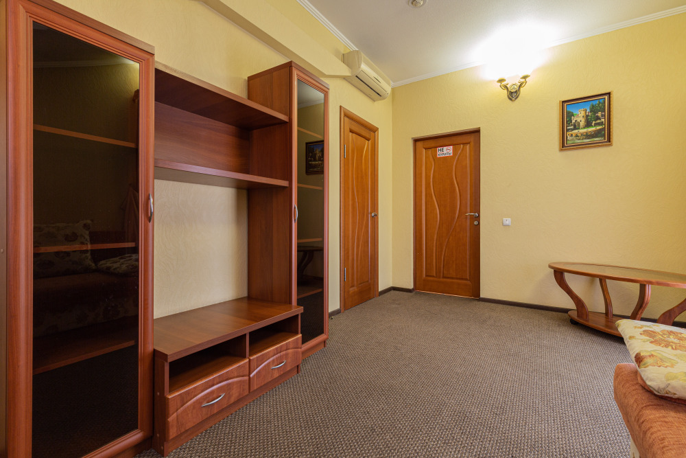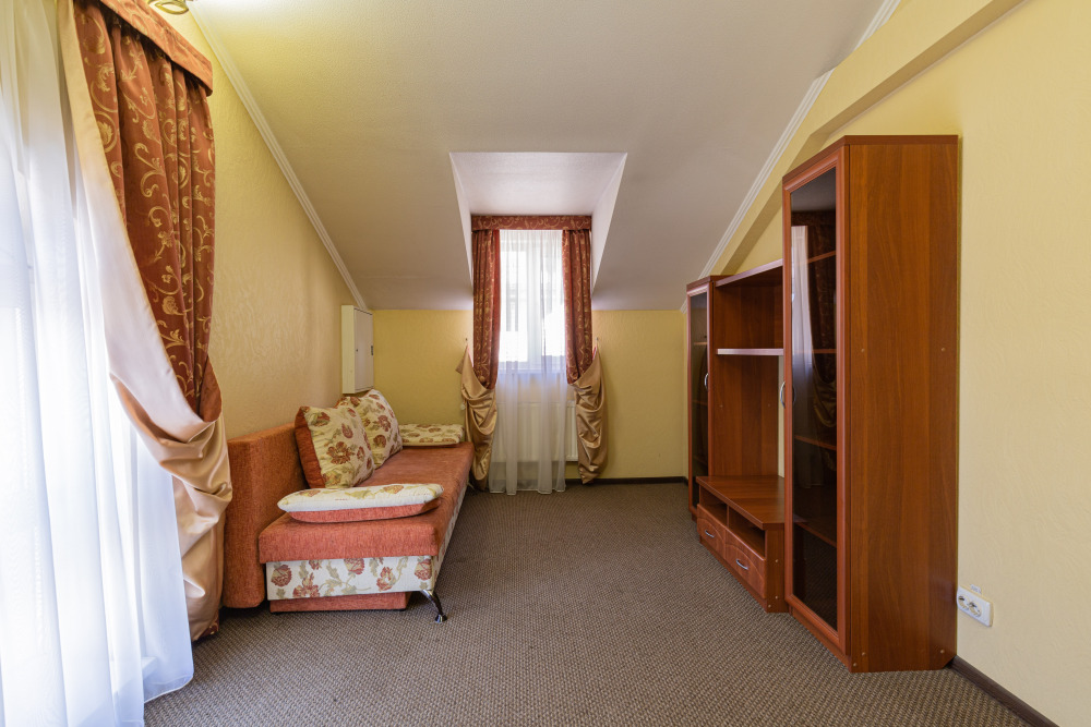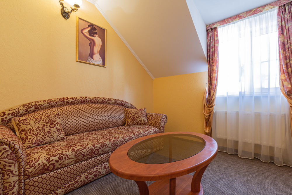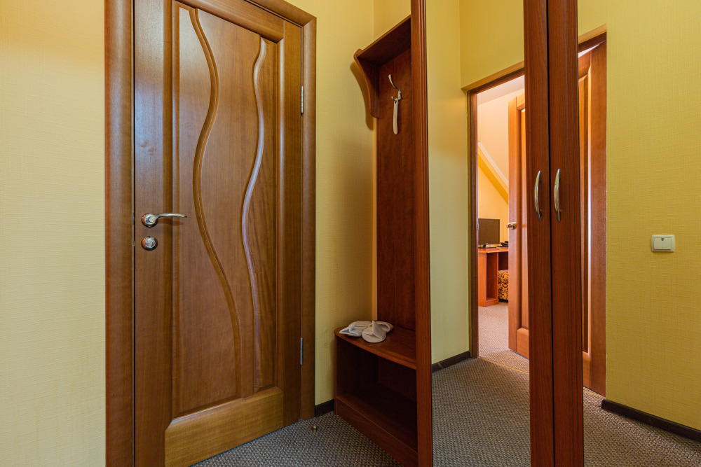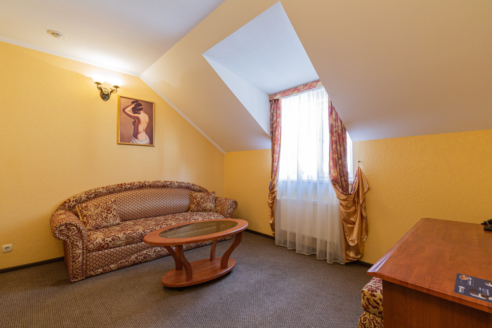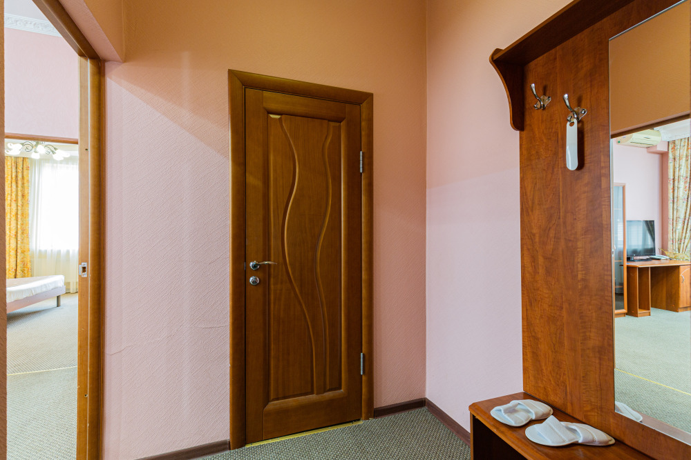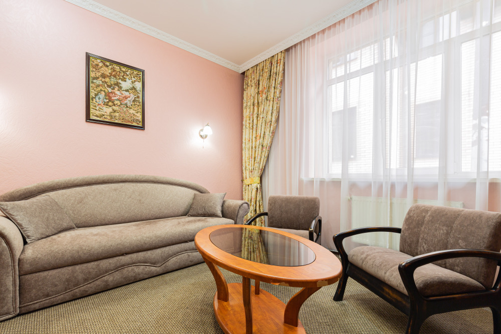 Просторный номер категории Люкс — это отличный выбор для тех, кто ценит комфорт и спокойствие. Он идеально подойдёт для семей, молодых путешественников и всех, кто ищет уютное пространство для отдыха в командировке или на выходных. Номер также прекрасно подходит для размещения с детьми.