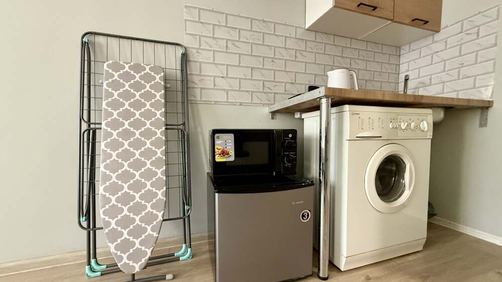 Для гостей: Wi-Fi, постельное бельё, полотенца, посуда, фен, утюг, гладильная доска, сушилка, микроволновая печь, плита, водонагреватель, стиральная машина, холодильник.