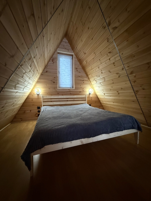 2 основных спальных места: отдельная спальня на первом этаже с двуспальной кроватью, большая кровать на втором этаже.