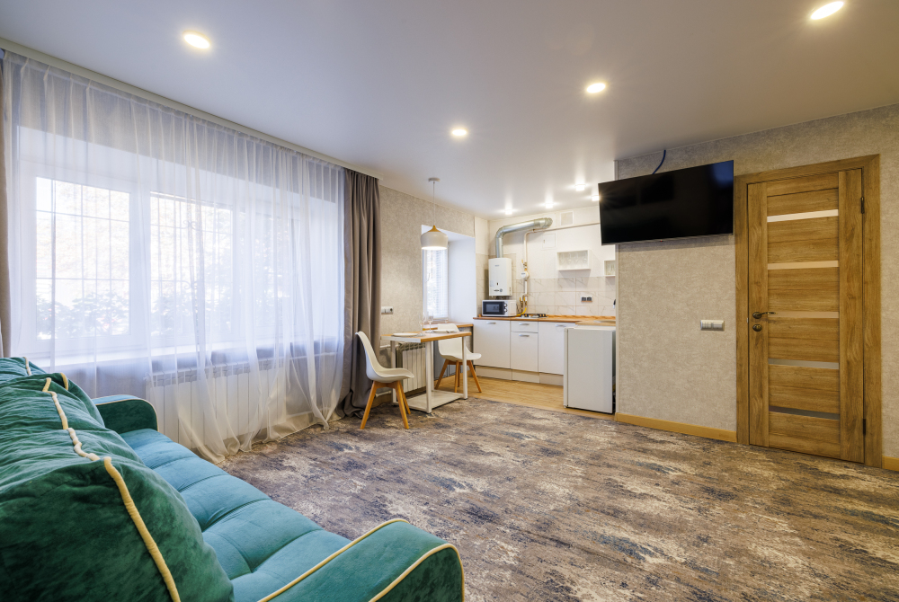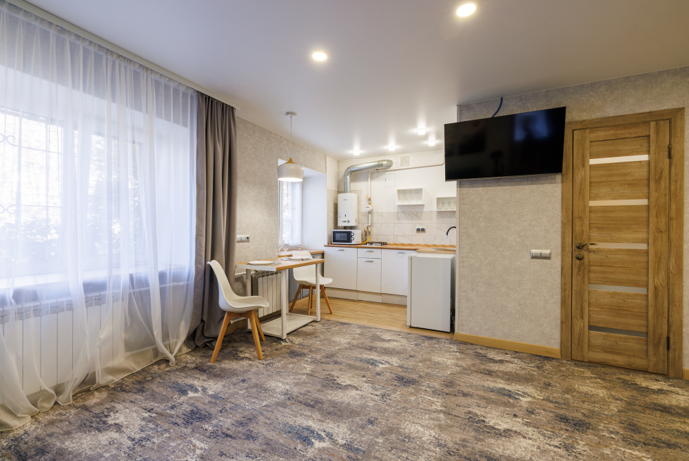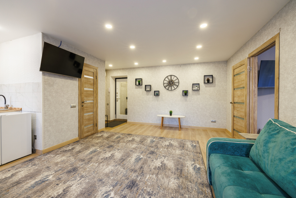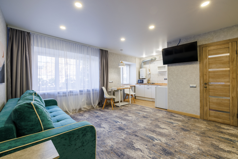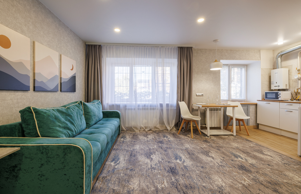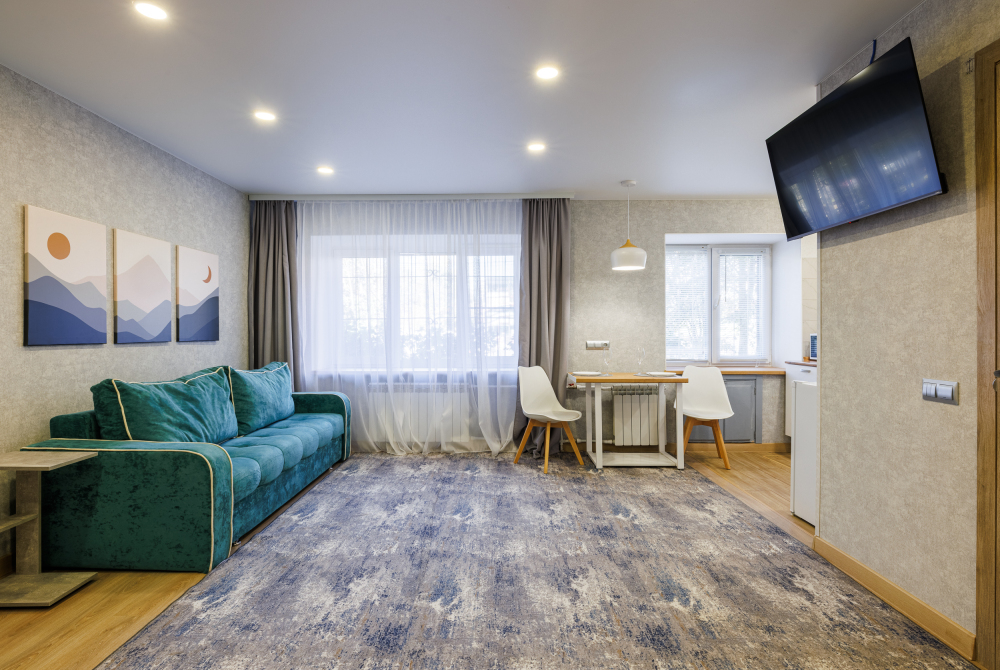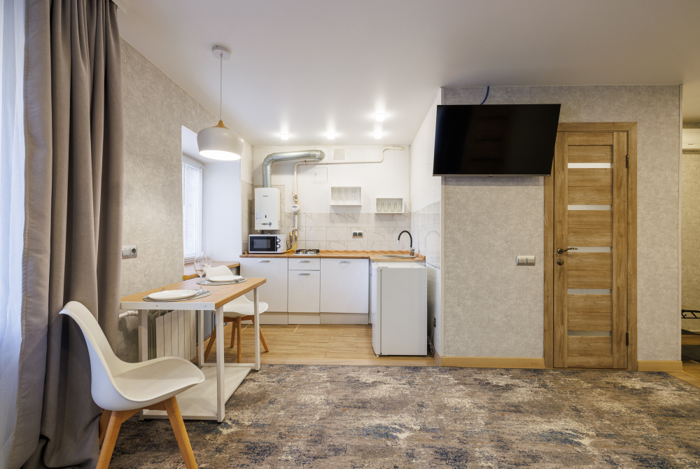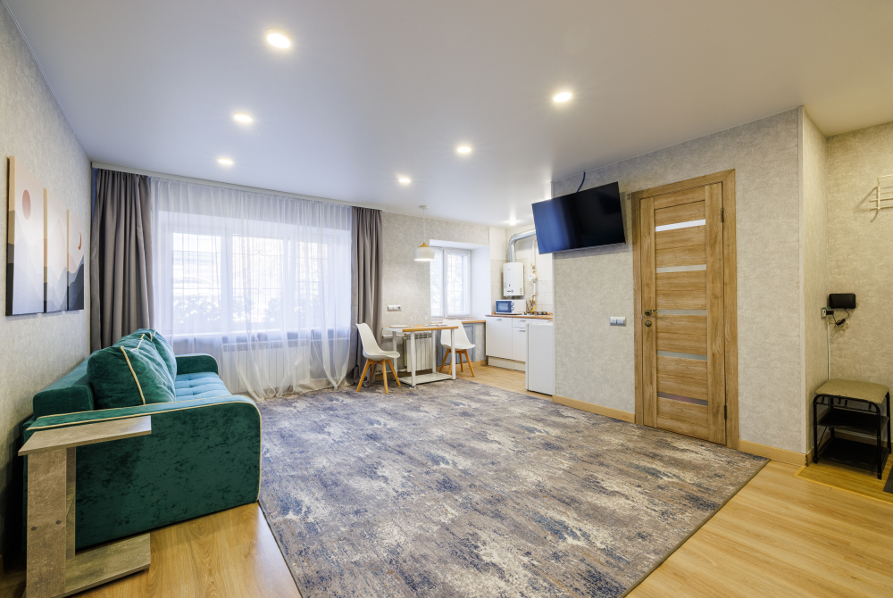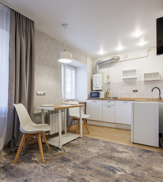 В апартаментах есть всё самое необходимое: телевизор, Wi-Fi, фен, утюг, стиральная машина, чайник, микроволновая печь, плита, холодильник, столовые приборы и базовая посуда, чай и кофе. Мы предоставляем нашим гостям полотенца, гель для душа, свежее постельное белье и тапочки.