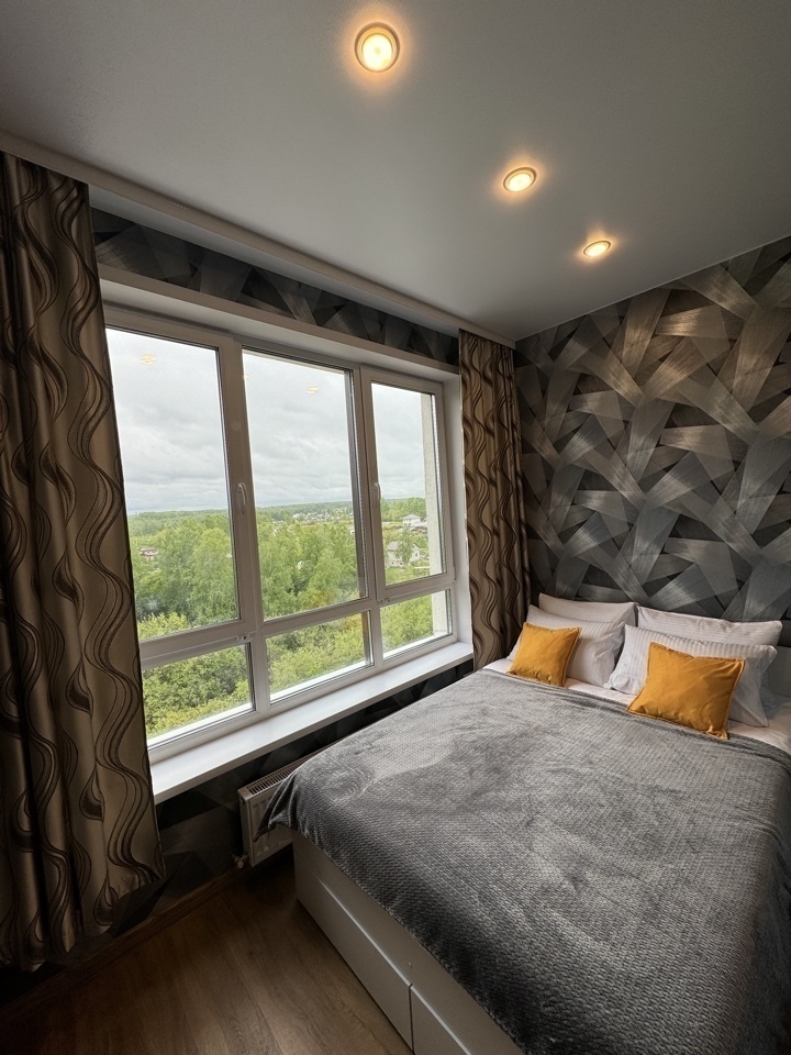 Дополнительно: большая открытая парковка, современные детские игровые площадки и современная территория жилого комплекса; окна панорамные, с видом на лес.